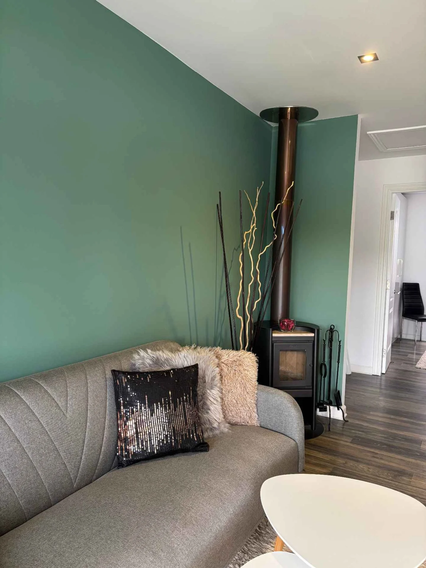 Los apartamentos cuentan con área de estar con estufa a leña de alto rendimiento. Aberturas que proveen un muy alto grado de iluminación natural además de cortinas que brindan y reducen el ingreso de luz, posibilitando múltiples escenarios de iluminación. Cocina. Jardín frontal que dirige hacia el ingreso principal, por el lateral donde se dispone de cochera para siete autos.