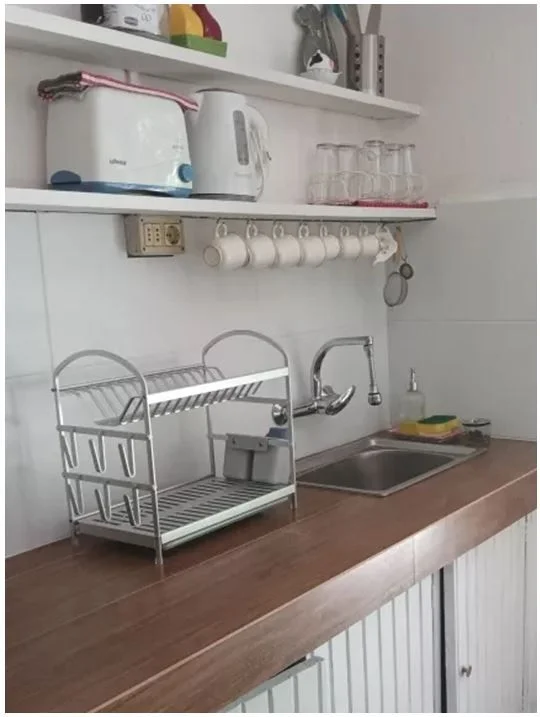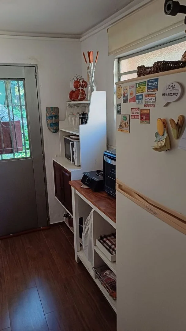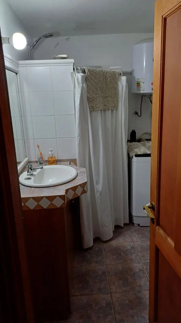 Baño completo a nuevo. Cocina con heladera con frezzer, microondas, cocina a gas, lavarropas, y vajilla para 6 personas. Living-comedor integrado.