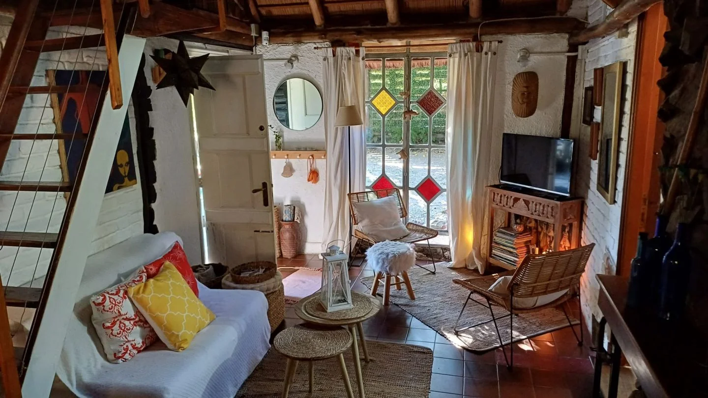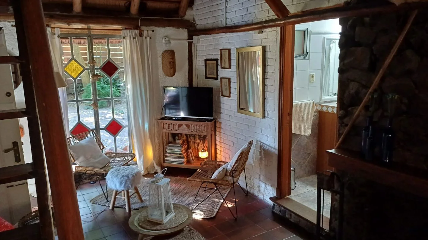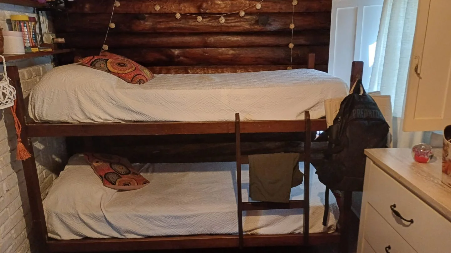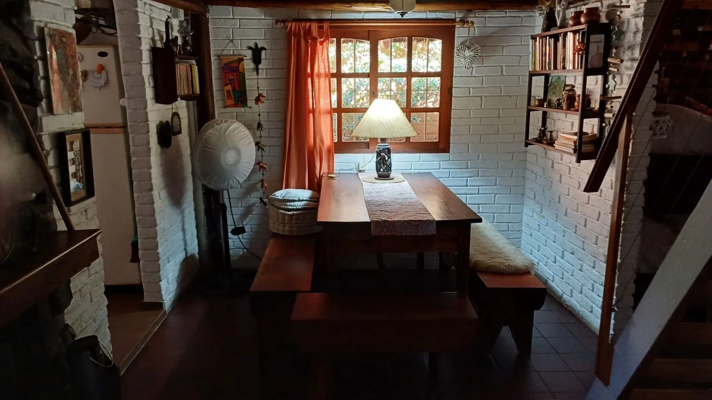 En Planta Baja: 1 dormitorio con 1 cama individual y 1 cucheta, living-comedor integrado con Smart TV, estufa a leña y sillones, mesa y sillas para comer, cocina definida y baño.