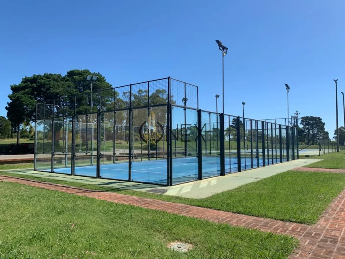 * Cancha de paddle vidriada con césped sintético.