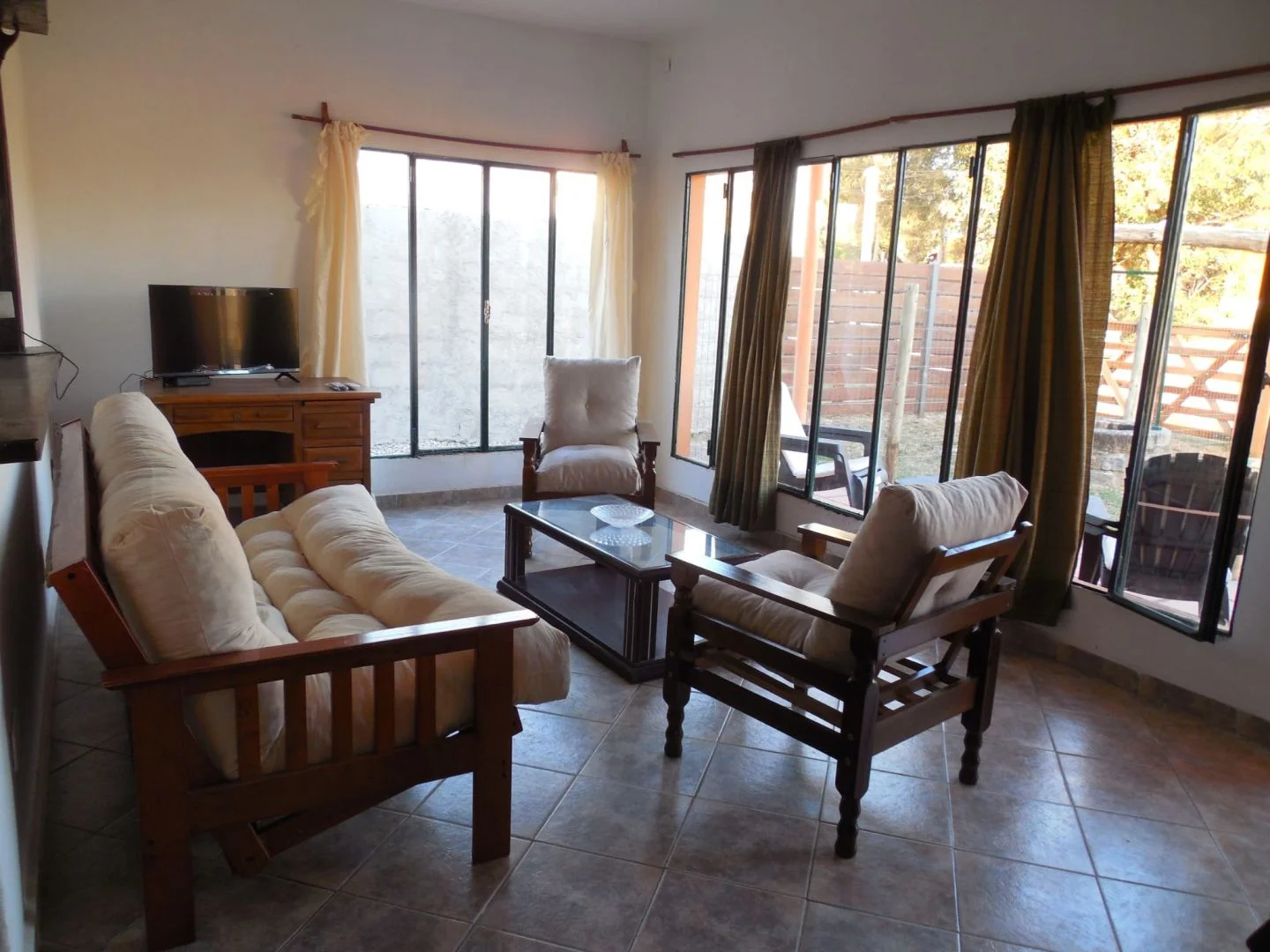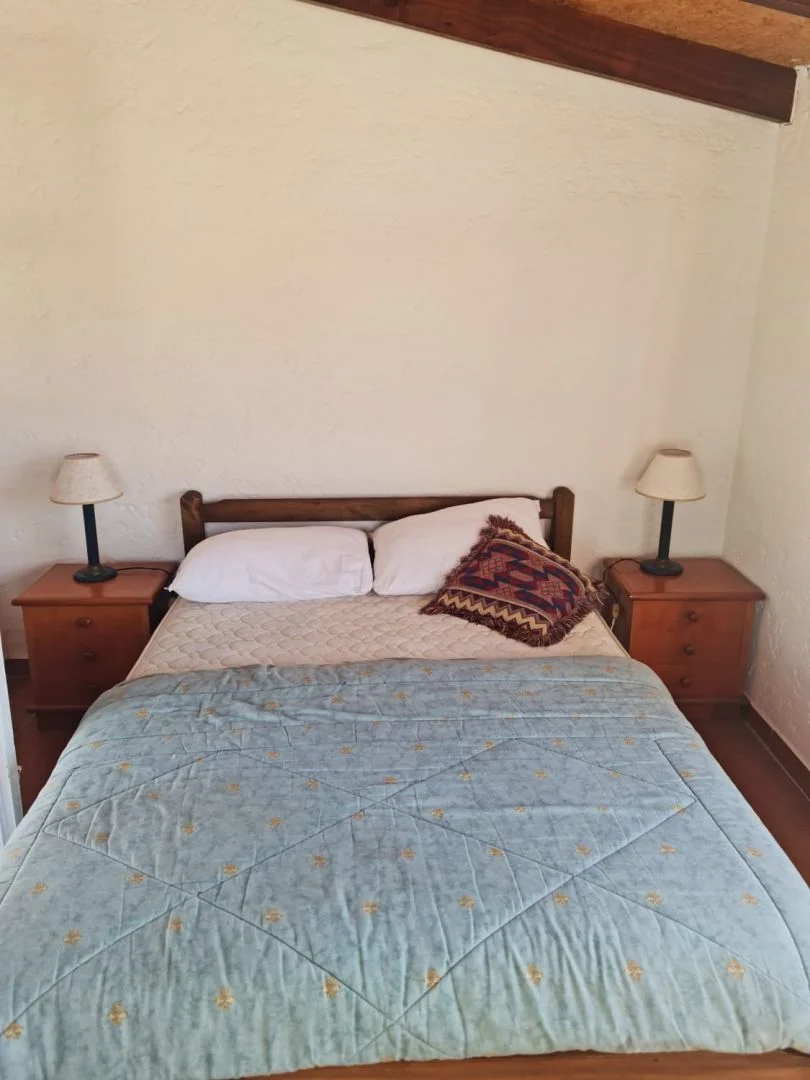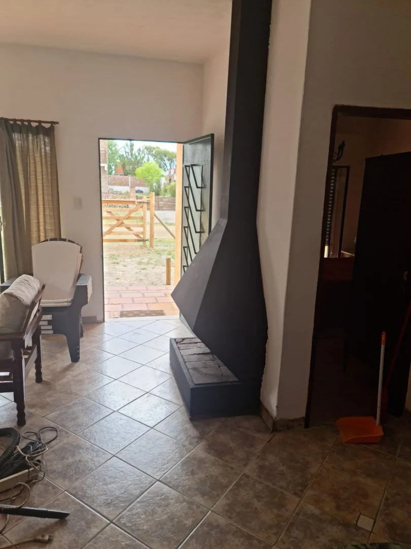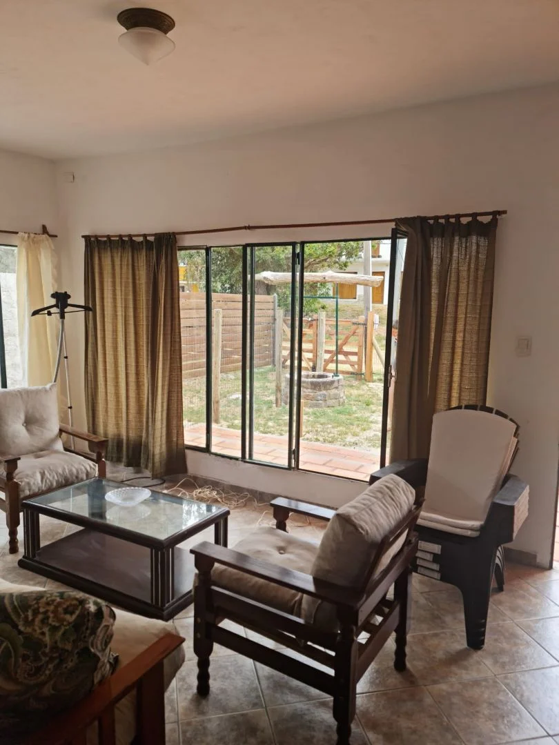 Los dormitorios de la casa tienen uno con cama matrimonial, placar y mesas de luz y el otro con cama individual y cucheta, cómoda y mesas de luz. En living aire acondicionado, estufa a leña, sillón-cama y rack con televisor smart 32" con Dtv y sillones con vista hacia la calle con amplios ventanales. La cocina-comedor integrada con heladera con freezer, lavarropas, microondas, alacena, cocina a super gas, pequeños electrodomésticos y vajilla para 6 personas. Un baño completo. Porche al frente.