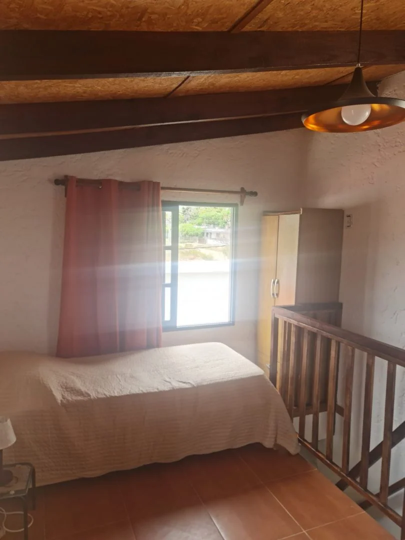 El apartamento, que tiene entrada independiente, en la Planta Alta, cuenta con 1 dormitorio, por escalera, con cama matrimonial y cama marinera, placar y mesas de luz. En la Planta Baja, cocina-comedor-living integrados y baño completo. Balcón -con vista al mar- techado y cercado para mayor seguridad. Fondo con parrillero no techado, totalmente cercado con muro, tejido y portón.
