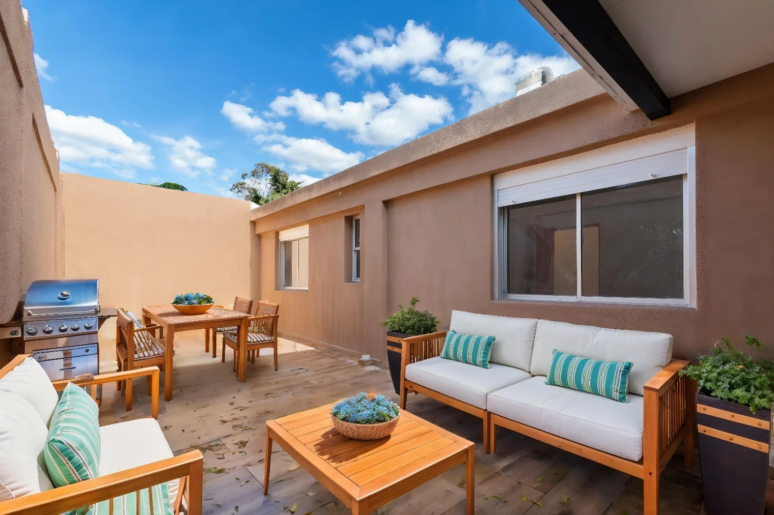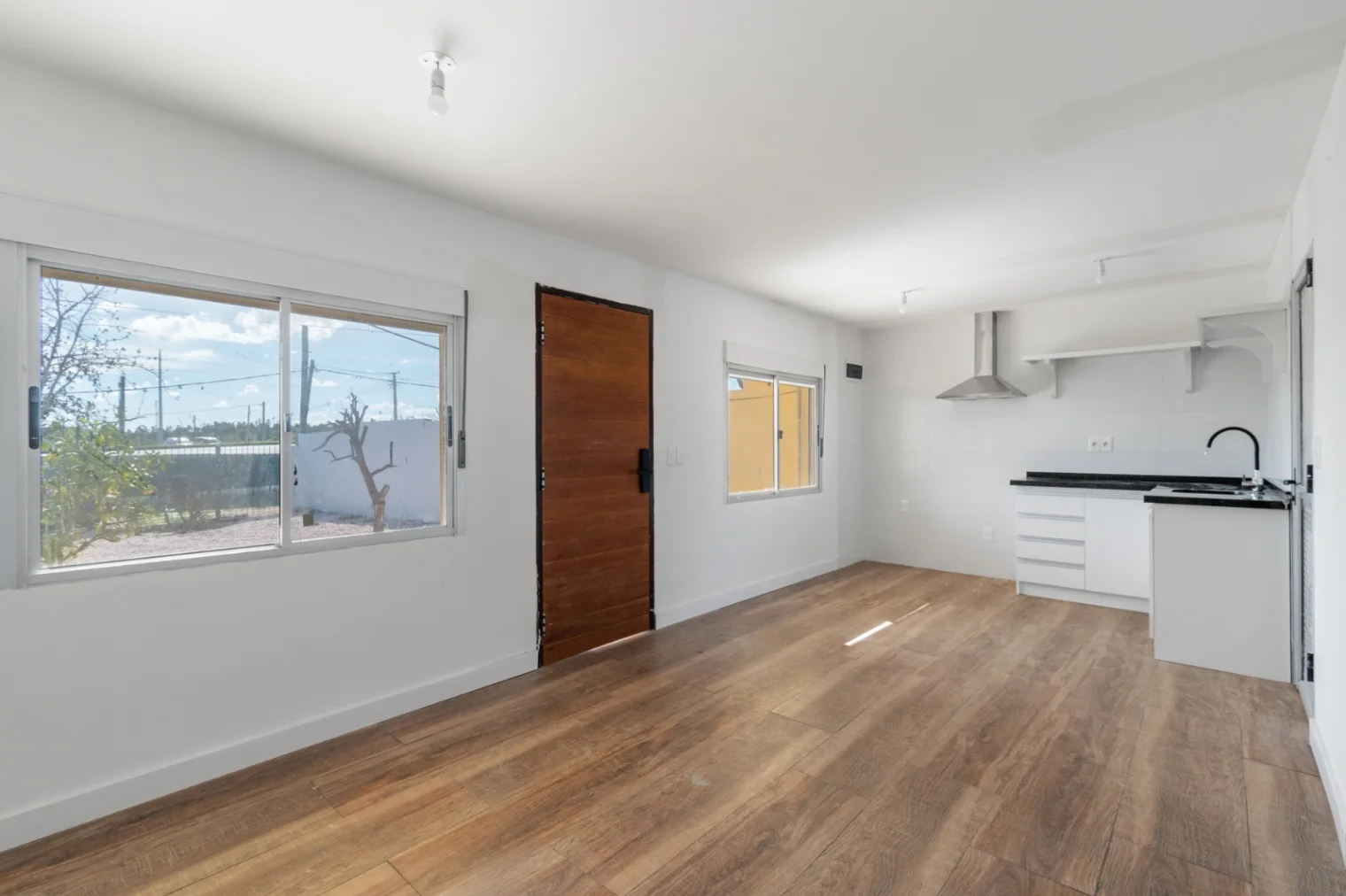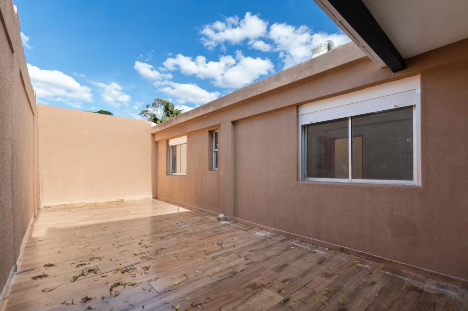 Ubicado al frente con orientación norte. Desde la cocina se accede a un amplio patio interno.