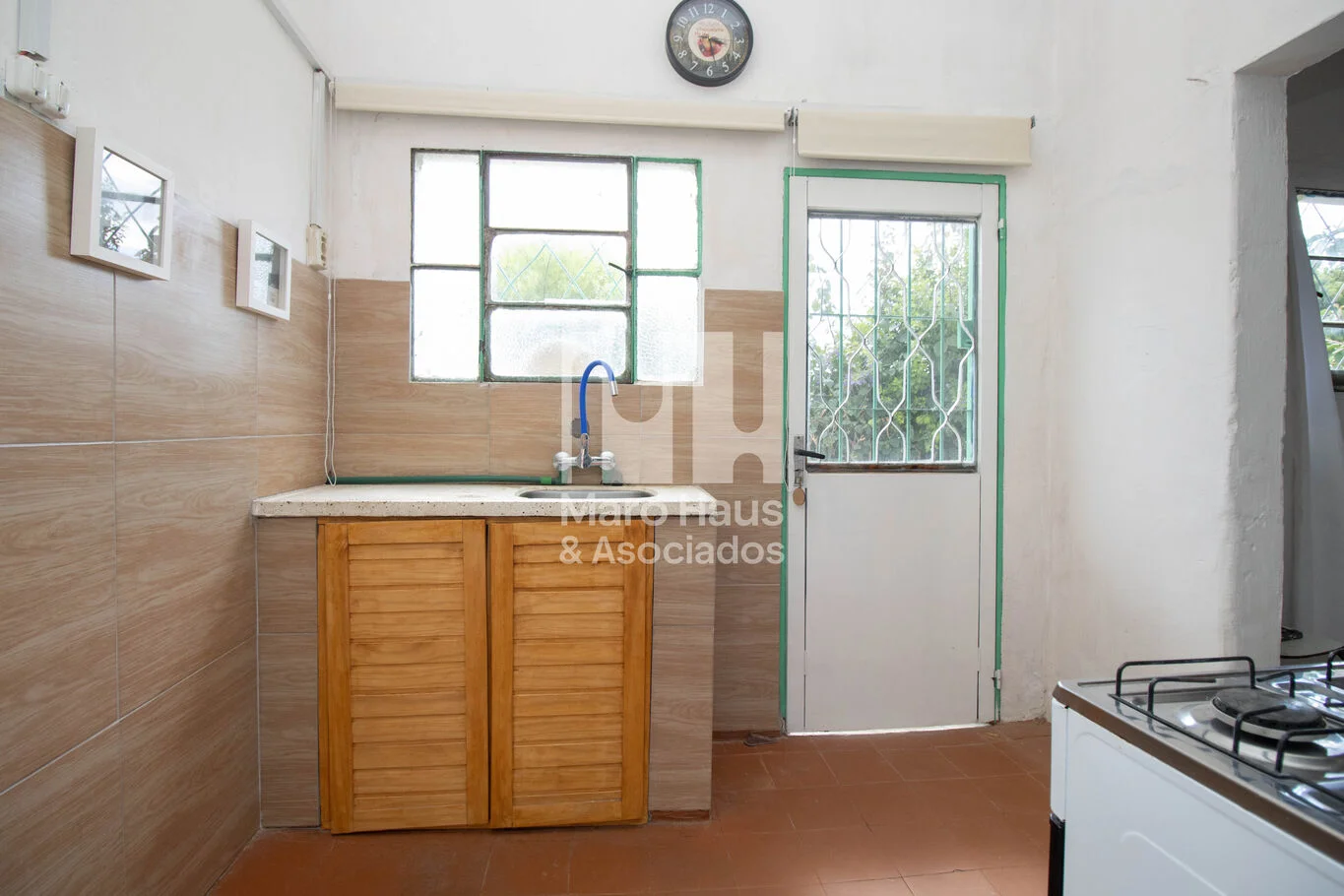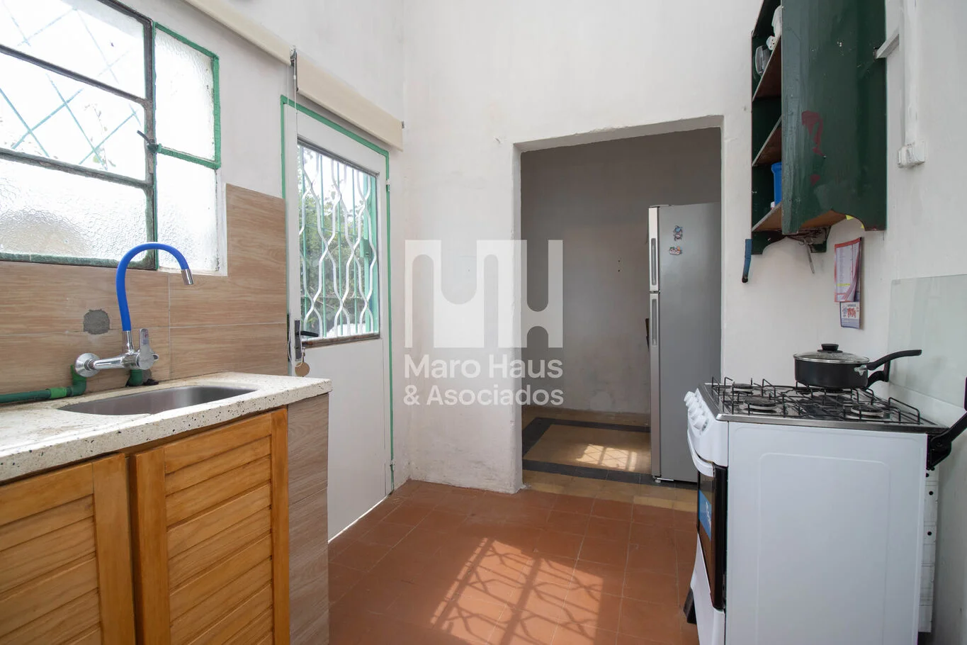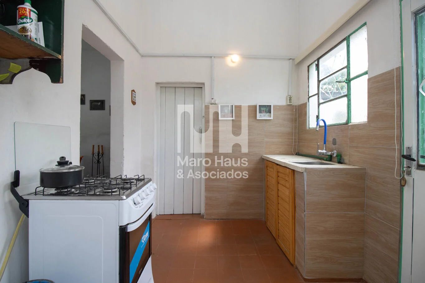 Cocina independiente con bajo mesada revestido en cerámica y ventilación natural
