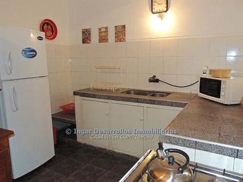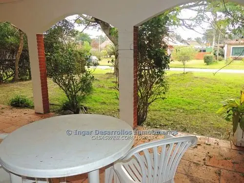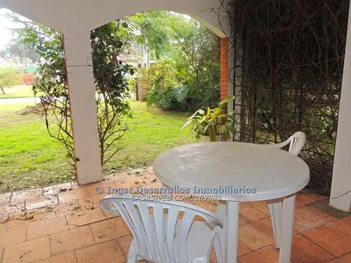 Garaje con parrillero, mesada, pileta, lavarropas automático, mesa y sillas, salida al parque trasero. Fondo enjardinado y arbolado c/parrillero al aire libre. Alarma, luz de UTE, agua de Ose, Direct TV pre pago. Wifi. Capacidad 5 personas.