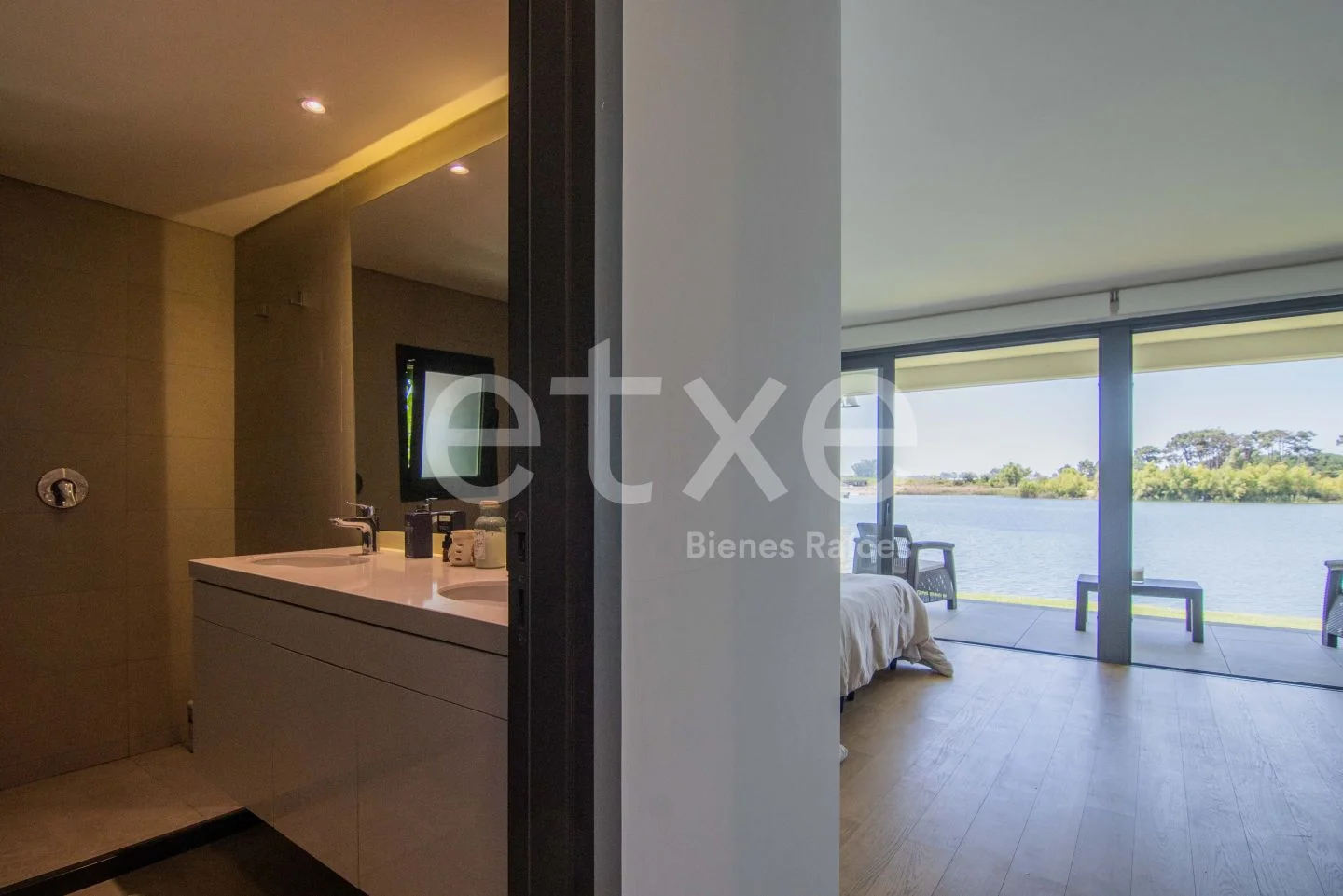En el Nivel 1, la casa cuenta con dos dormitorios en suite con placares. En el Nivel -1, se ubica la master suite con vestidor, baño de doble bacha y una terraza privada con vistas al lago y al jardín. También hay un área de lavadero.