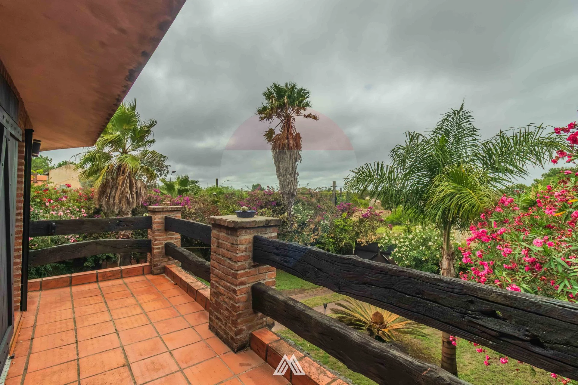 Cercado perimetral con muro y vegetación, dando intimidad y seguridad.