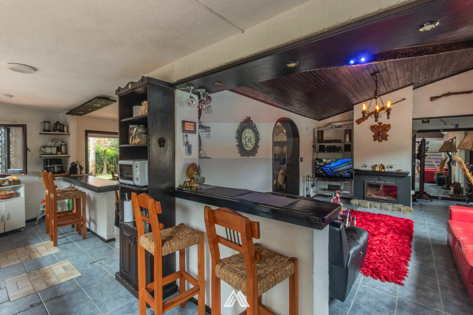Living con estufa a leña