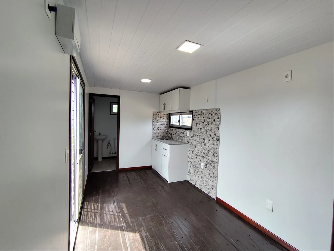 Amplio living comedor con puerta-ventana de acceso, cocina integrada con muebles aéreos y bajo mesada, ventana de doble hoja, dormitorio con ventana, baño con mampara de vidrio templado, ducha higiénica. Paredes revestidas termica y acústicamente, pisos flotantes, iluminación exterior y rejas en todas las aberturas. Sin gastos comunes.