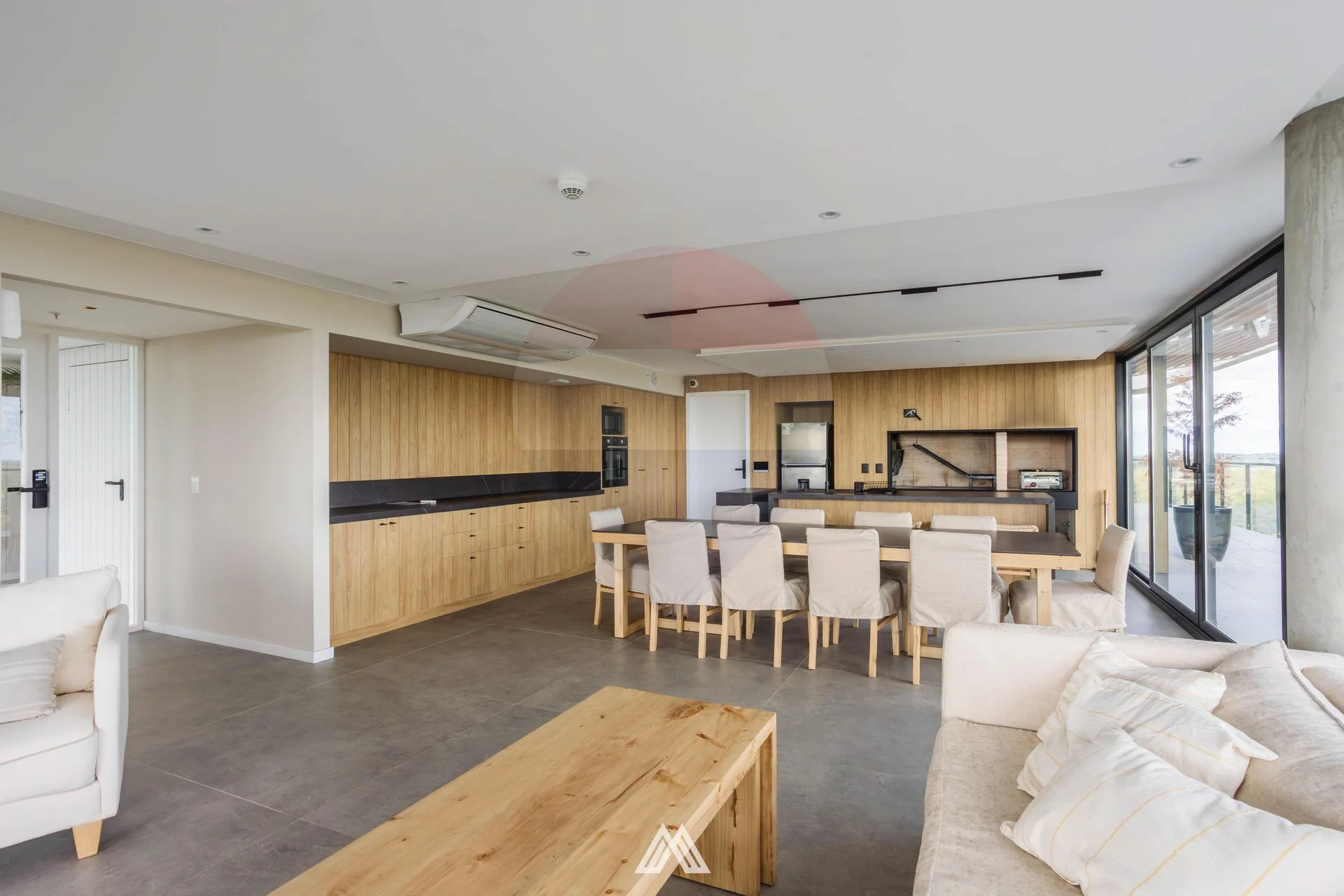 Equipado con Horno, campana, anafe, 2 aires acondicionados, cortinas en living y dormitorio, caldereta a gas para el agua caliente y calefacción por loza radiente individual.