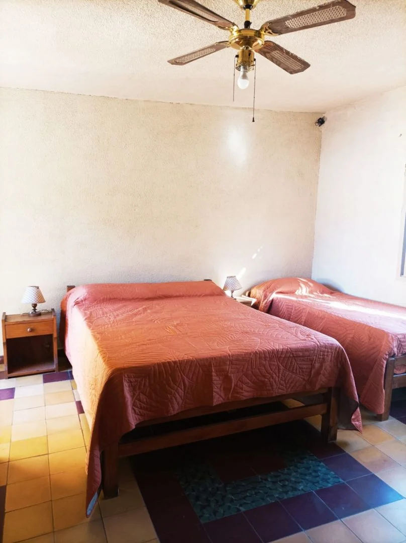 Cuenta con 3 dormitorios: 1 dormitorio con cama matrimonial adentro de la casa y los otros 2 independientes al lado de la casa (con un baño).