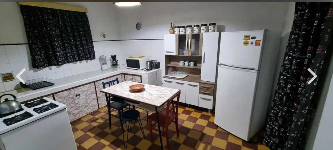 Cocina a gas, horno microondas, heladera con freezer , licuadora, batidora, sandwichera, vajilla completa, heladera extra y lavarropas.