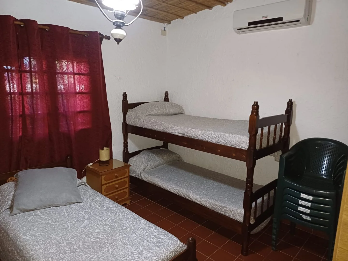 - Amplio dormitorio: cama cucheta, cama sencilla, sillón cama, placard, colchón de una plaza extra, Split frío calor, ventilador.