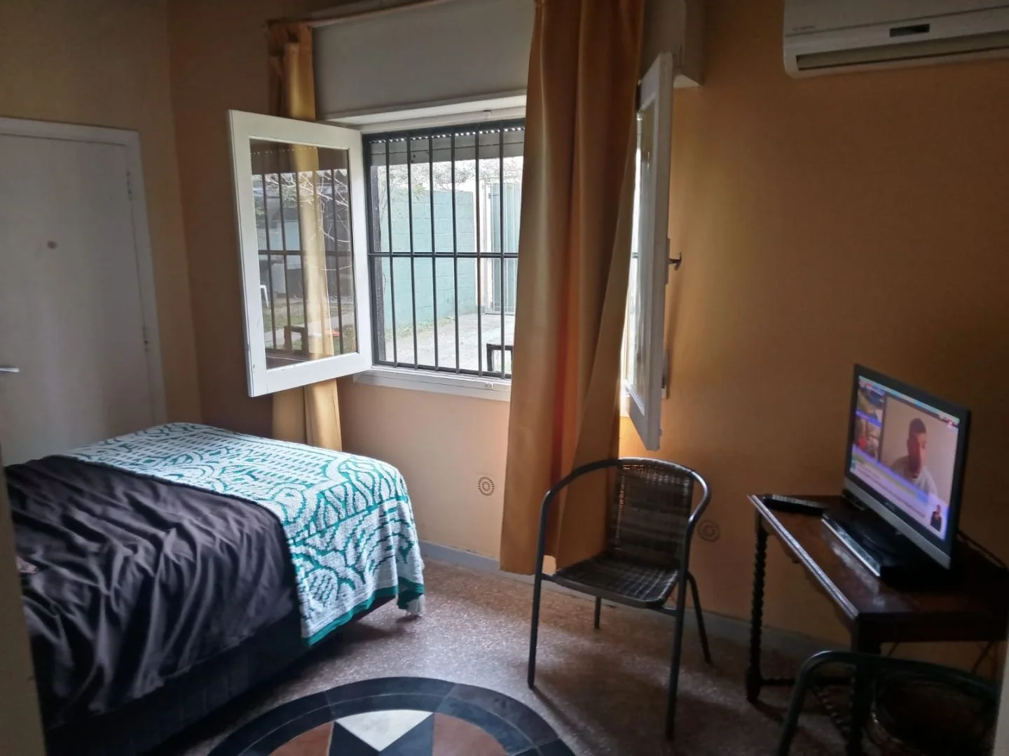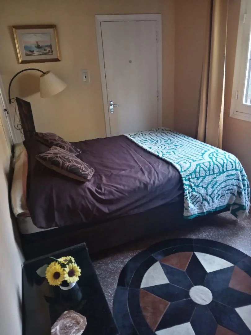En el apartamento del fondo (4×5 mts): 1 dormitorio con cama matrimonial, baño y cocina completa con heladera c/frezzer, microondas, cafetera, jarra eléctrica, etc.