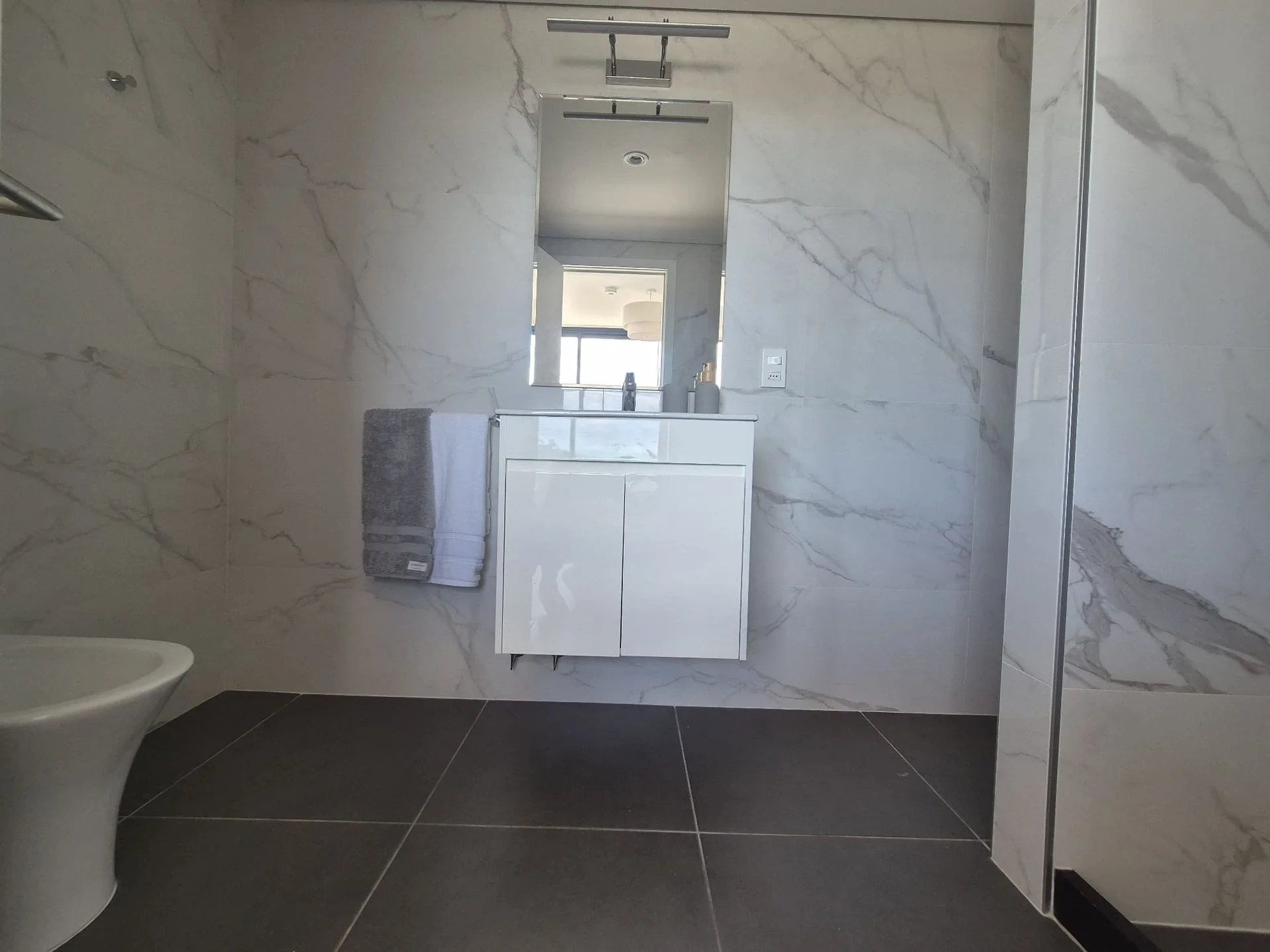 Baño super grande con espacio para lavarropa