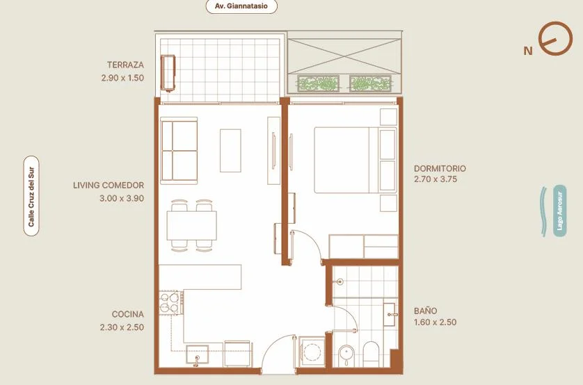 En los dormitorios se incluyen placares en melamínico, al igual que en la cocina, que dispone de muebles sobre y bajo mesada. Según la tipología, las unidades pueden presentar cocina integrada, semi integrada o definida, adaptándose a las distintas necesidades de cada estilo de vida.