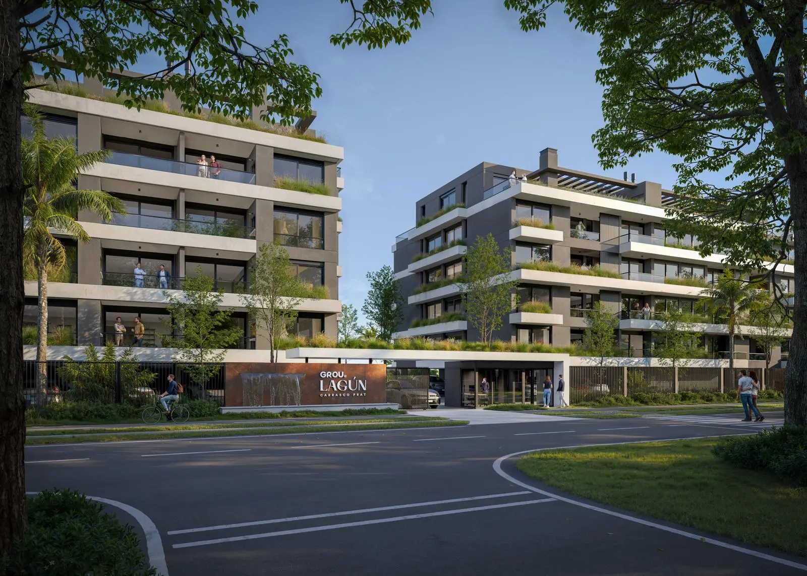 Lagún es un desarrollo residencial de 5 torres emplazadas a orillas del lago, en armonía con la vegetación autóctona del Distrito Carrasco Prat.