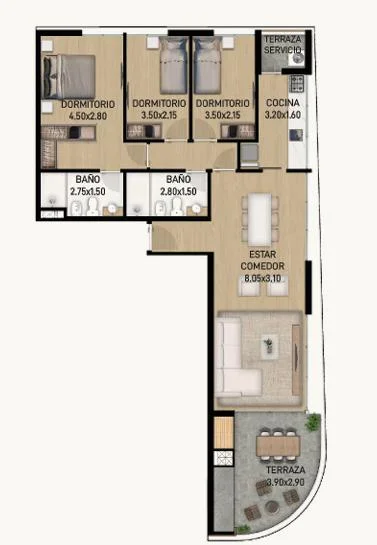 Los interiores se distinguen por sus terminaciones de primera calidad: pisos de porcelanato o vinílico, puertas principales con cerradura electrónica y previsión para aire acondicionado tipo split en dormitorio y living-comedor.