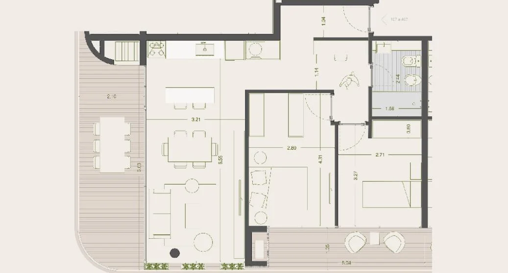 La unidad se destaca por sus espacios amplios y luminosos, con excelente distribución y diseño contemporáneo. Cuenta con placares en dormitorios, cocina equipada con muebles aéreos y bajo mesada, mesadas de granito y muy buen nivel de terminaciones.