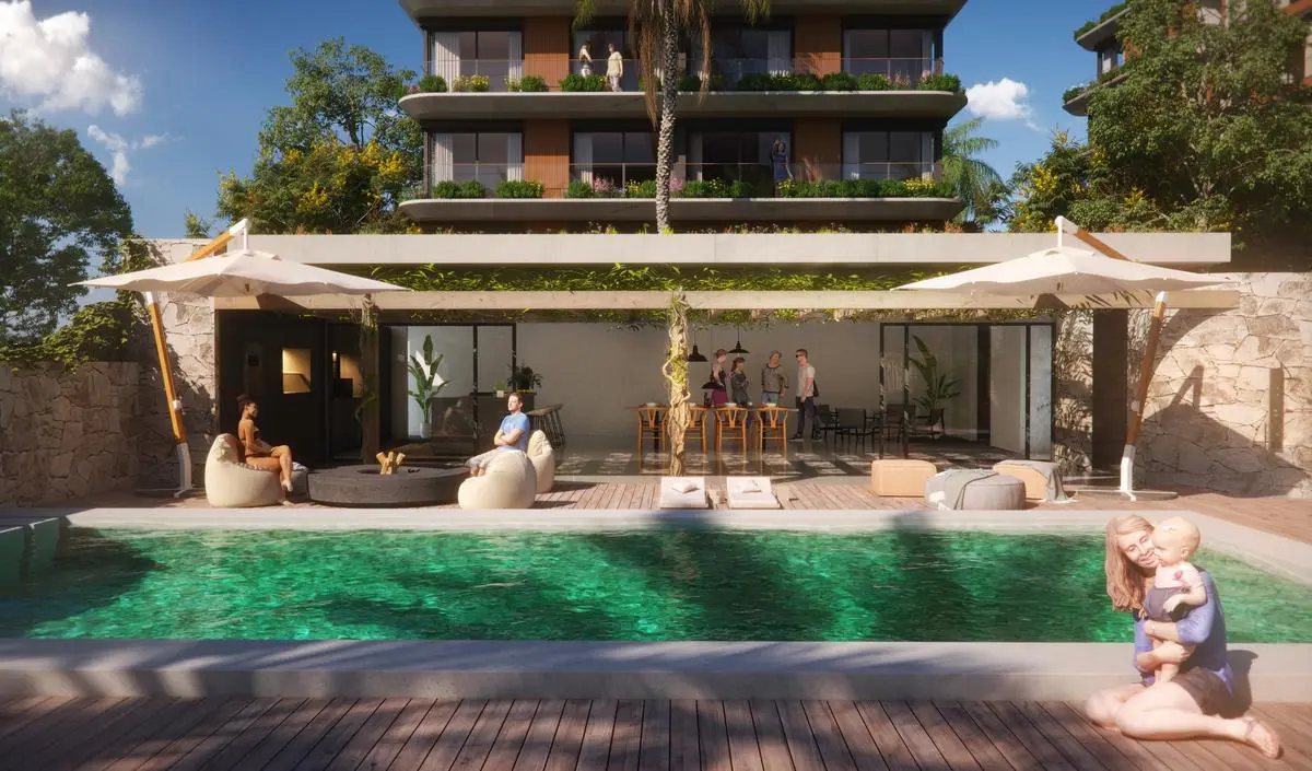 El edificio proporciona portería, control de acceso y circuito cerrado de cámaras de seguridad. Entre los amenities se incluyen: Piscina | Gimnasio, vestuarios y lockers | Barbacoa | Pool Bar | Solarium | Lounge | Kids Club | Rooftop | Sala de juegos | Laundry
