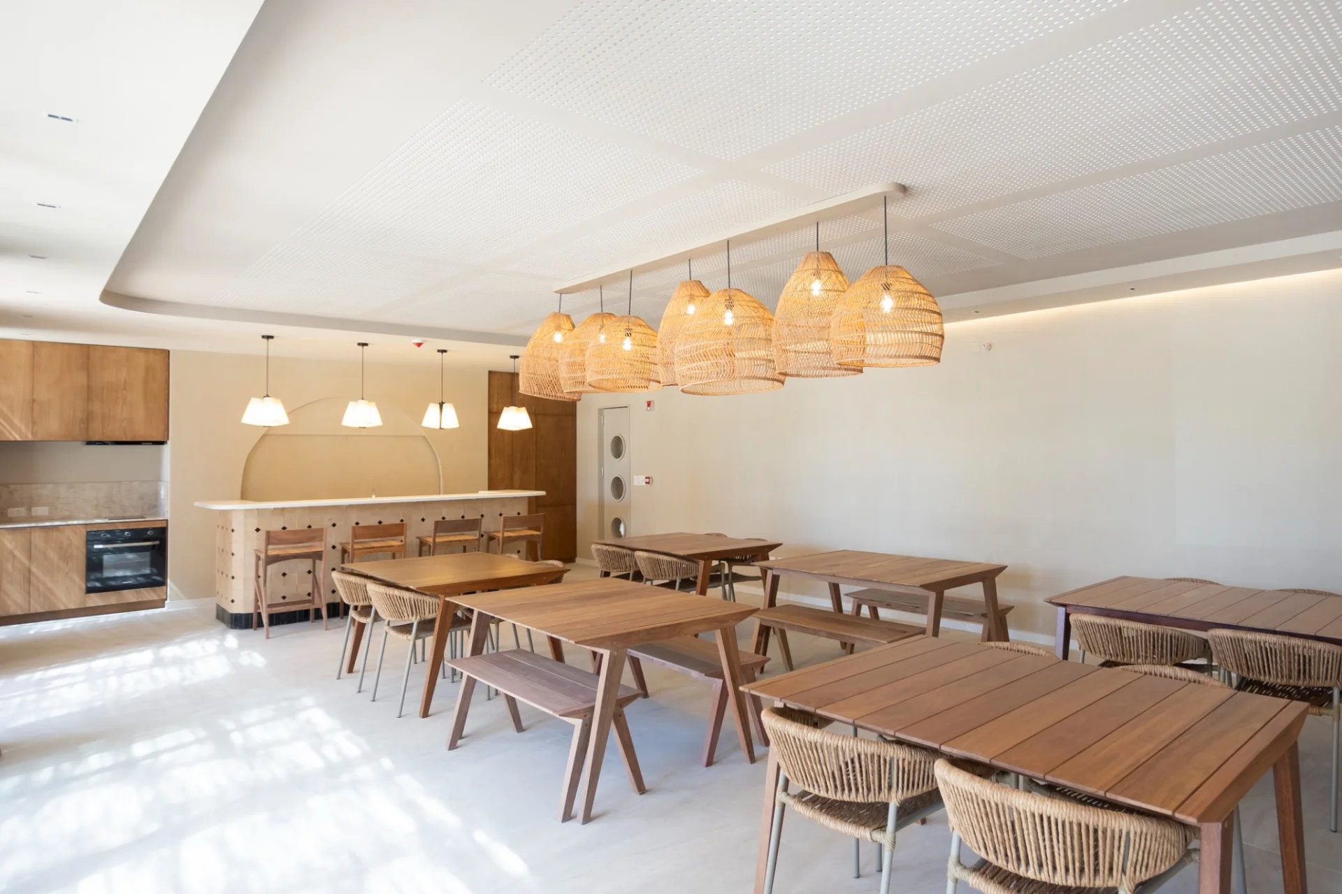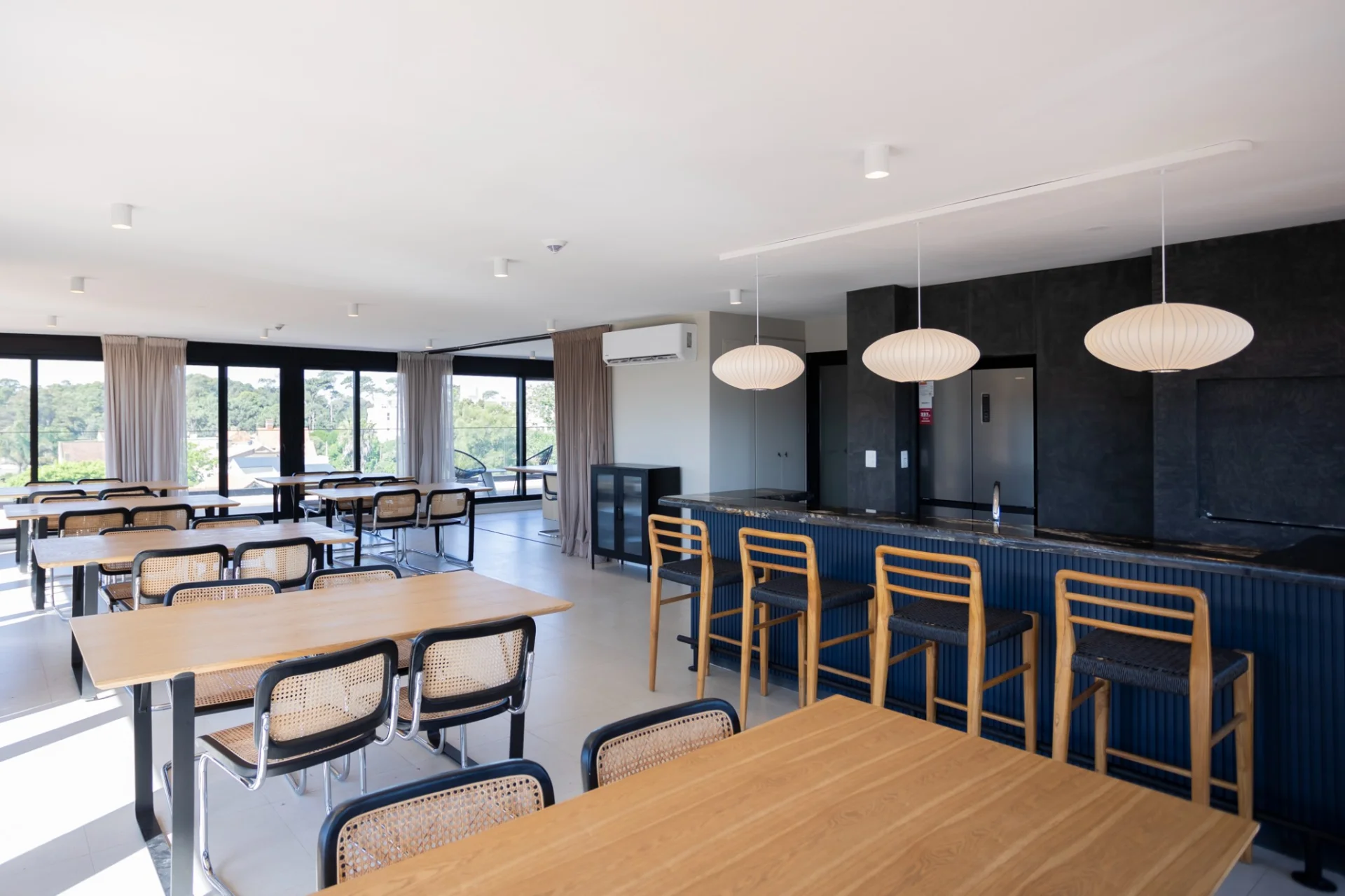 El edificio cuenta con portería, control de acceso y circuito cerrado de cámaras de seguridad. Entre los amenities se destacan barbacoas y bar, espacios multifuncionales, gimnasio, sauna, sector de juegos infantiles y piscina.