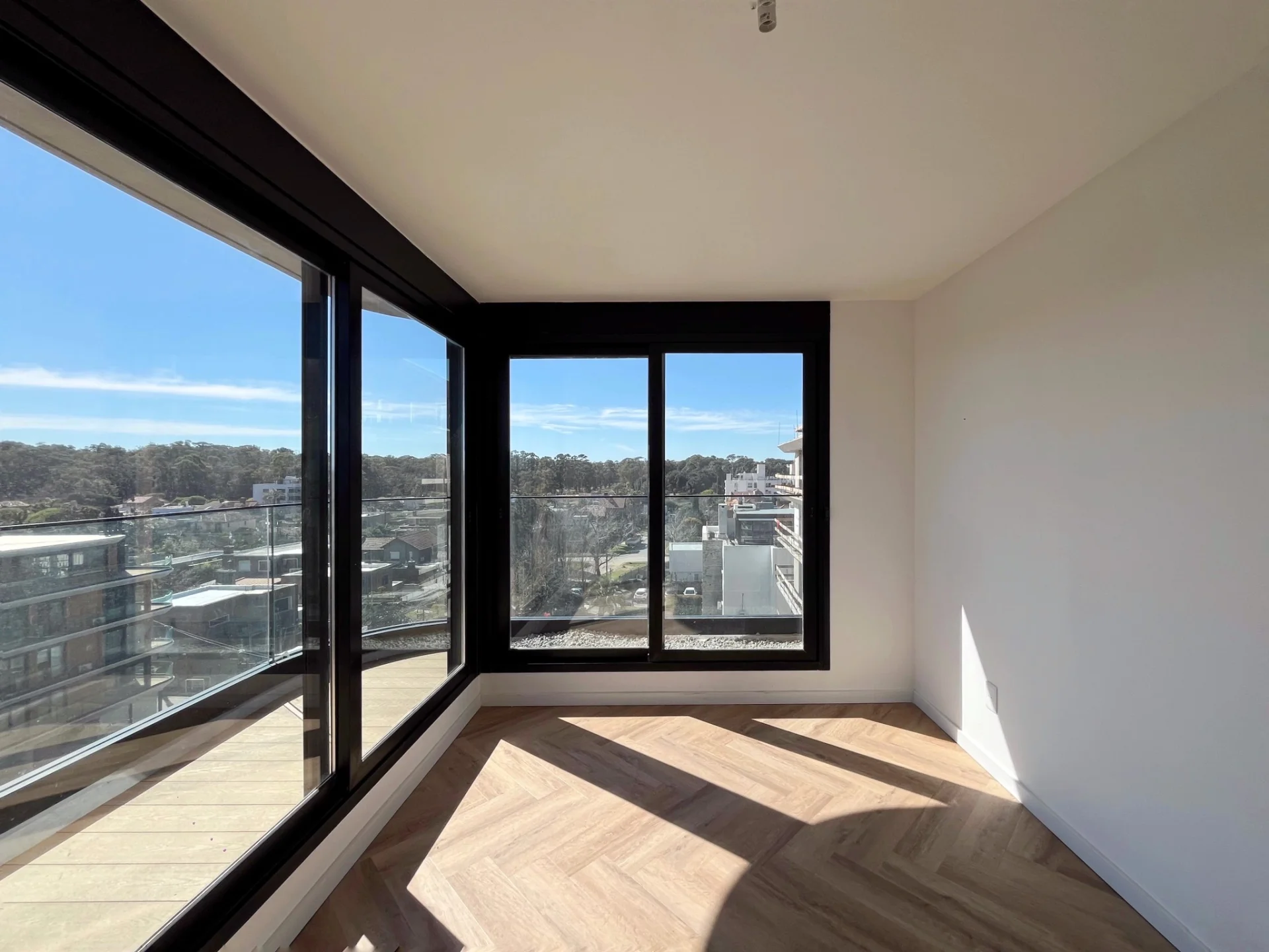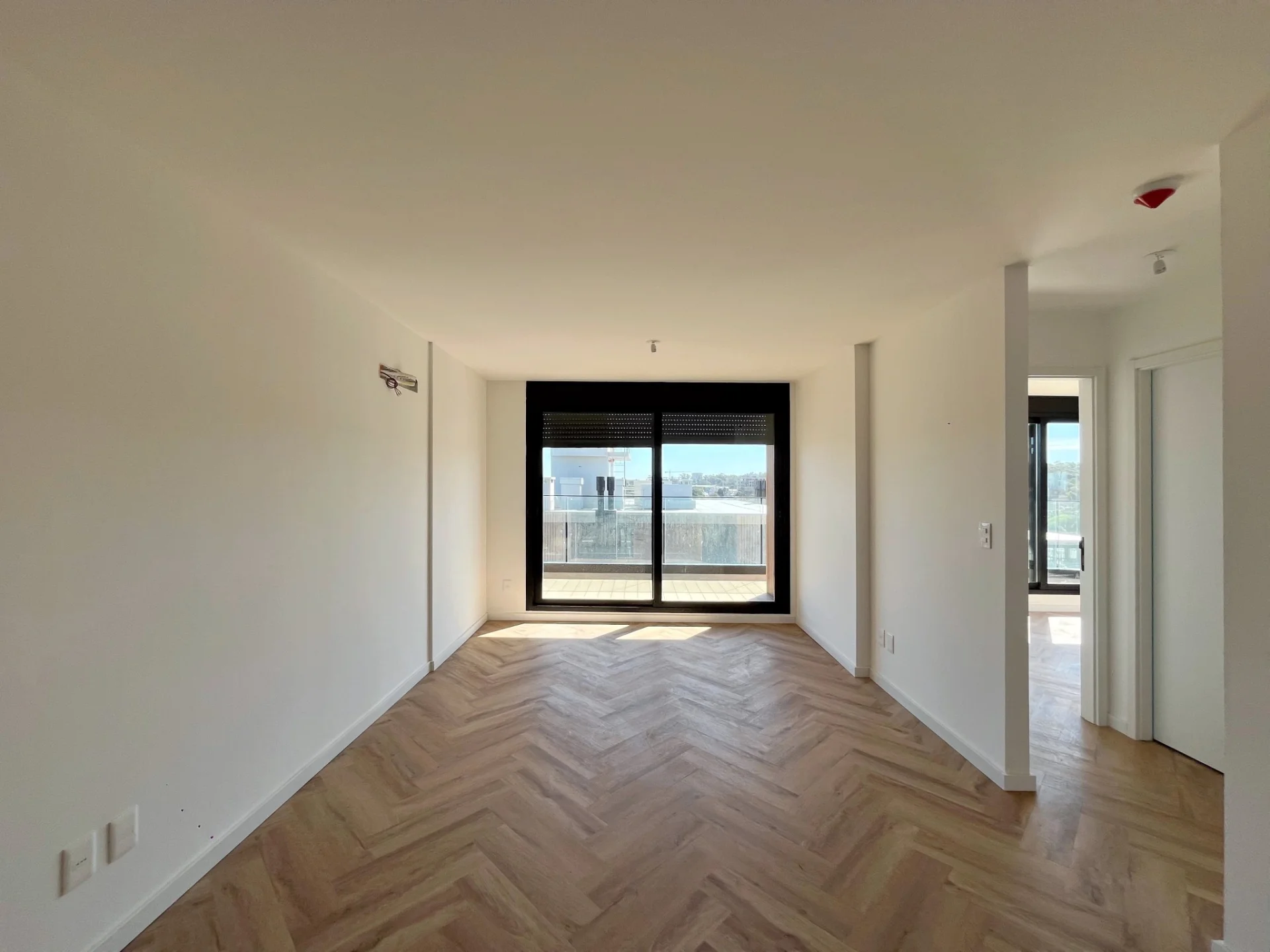 El apartamento en alquiler es una unidad a estrenar, orientado al norte y con un diseño funcional que incluye living-comedor, terraza y cocina integrada equipada con horno, anafe y campana, así como mobiliario bajo mesada y aéreos. Dispone de dos dormitorios con placares y baño equipado con accesorios, además de previsión para lavarropas. Los pisos son de vinílico de alto tránsito Verona y las cortinas de enrollar son motorizadas.