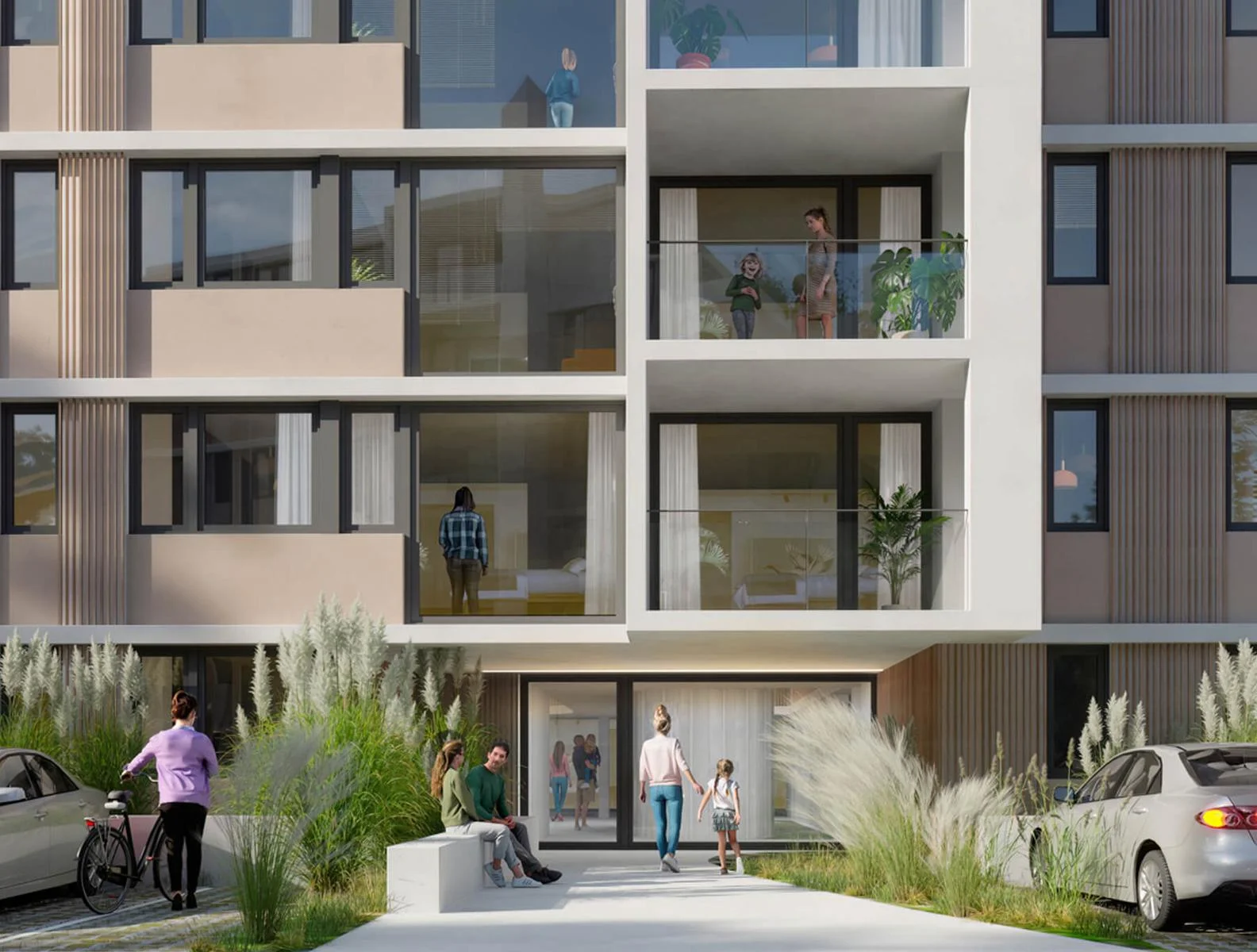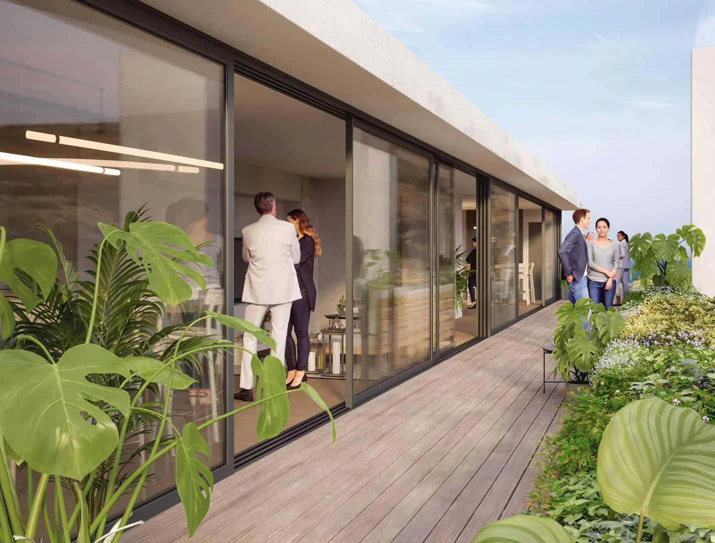 La vida en familia se despliega sobre las áreas comunes: a nivel del mar, un gran parque privado permite disfrutar del aire libre, con zonas de estar y terrazas para compartir con amigos.