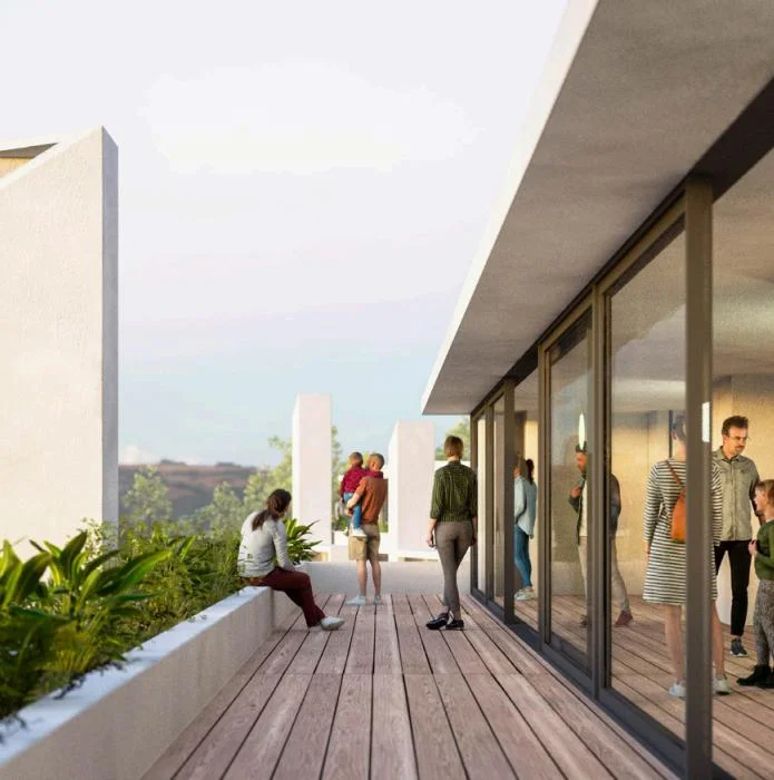 En altura, Costa Carrasco ofrece un rooftop comunitario que cuenta con 2 salas con parrillero, kitchenette, zona de tv y juegos, y una gran terraza mirador que invita a contemplar la inmensidad del cielo uruguayo.