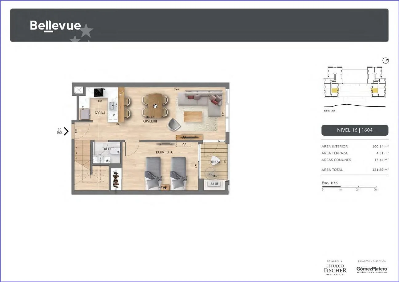 Apartamento dúplex en piso 16 y 17 con orientación norte.