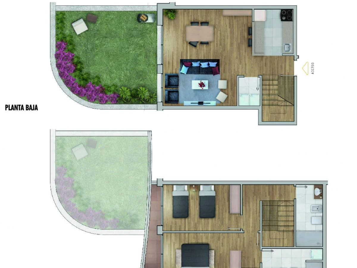 Apartamento duplex con jardin y vista al lago ubicado en planta baja. Unidades 002/003