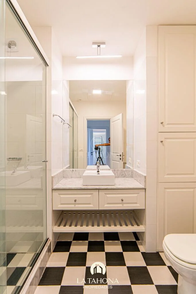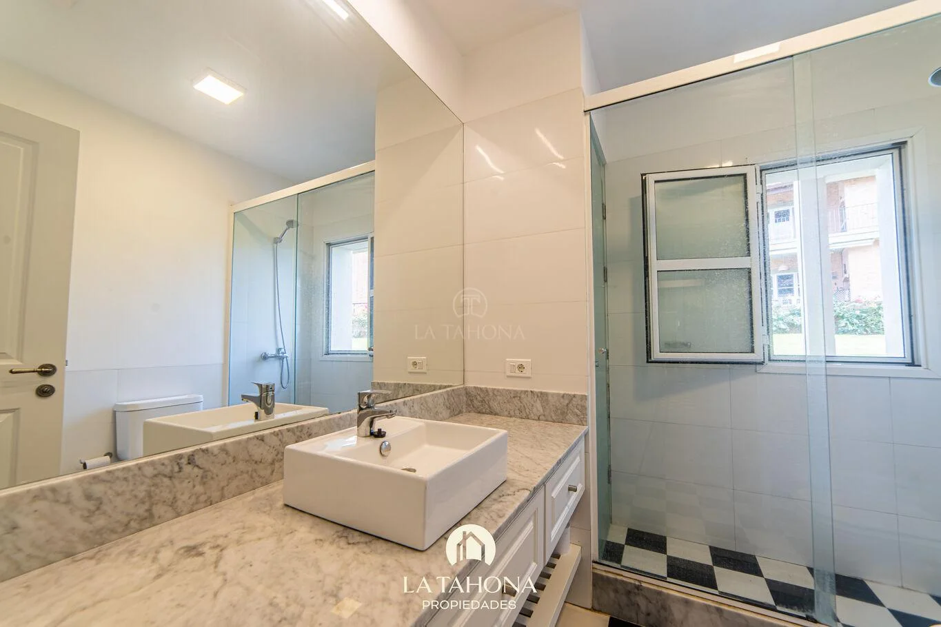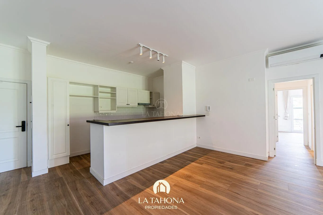 La propiedad cuenta con 2 dormitorios, principal en suite con vestidor, un segundo dormitorio con baño completo, living/comedor con cocina integrada y gran terraza con parrillero. Tiene un box de buen tamaño en el tercer nivel y dos lugares de estacionamiento y estacionamiento adicional de cortesía. Cuenta con laundry.