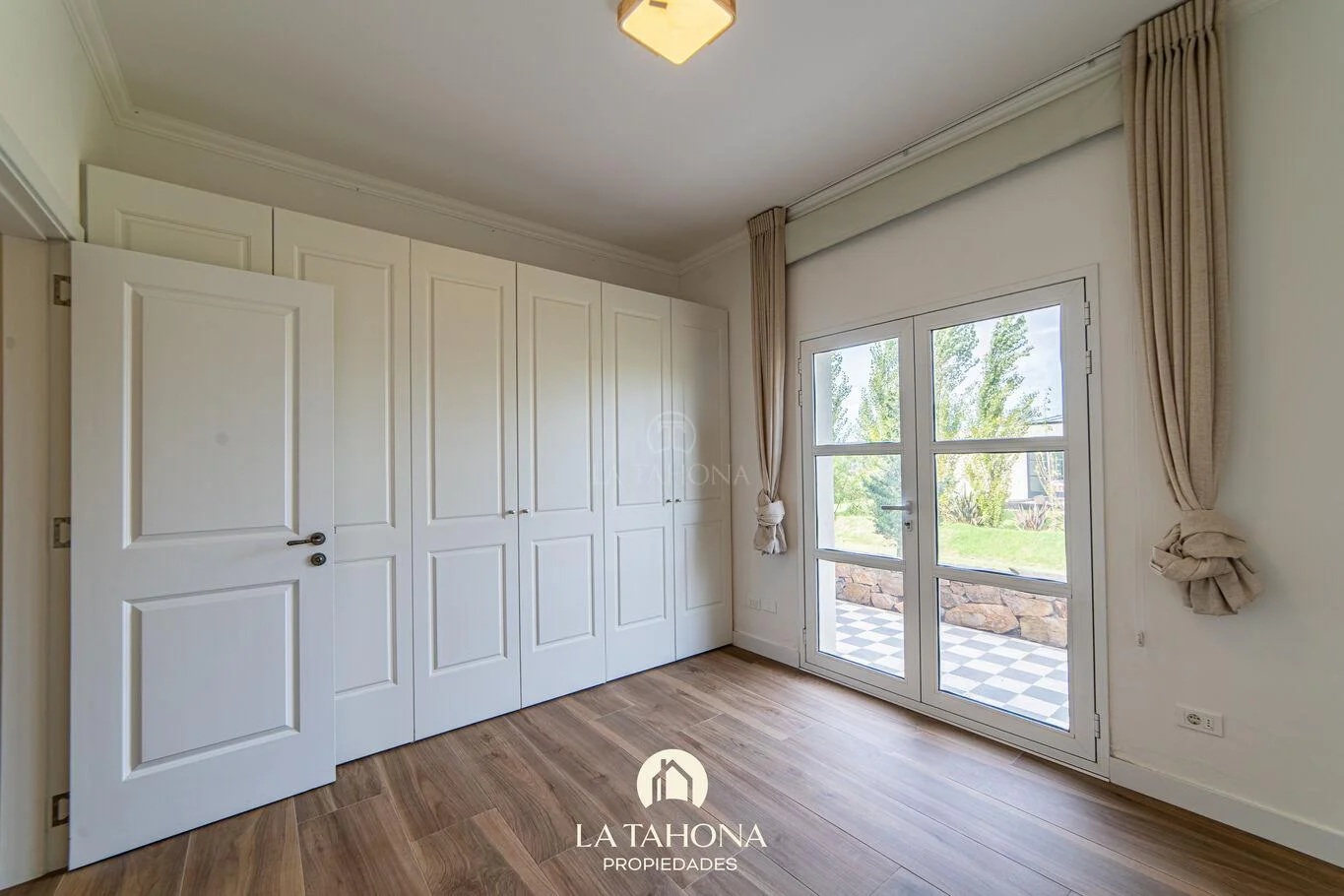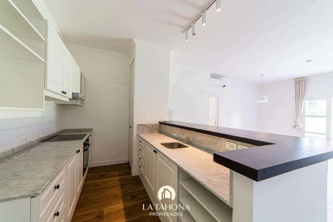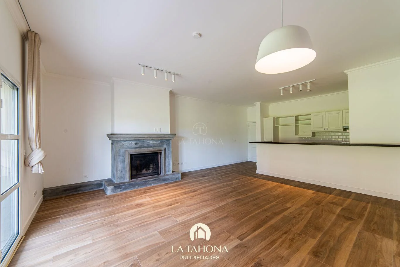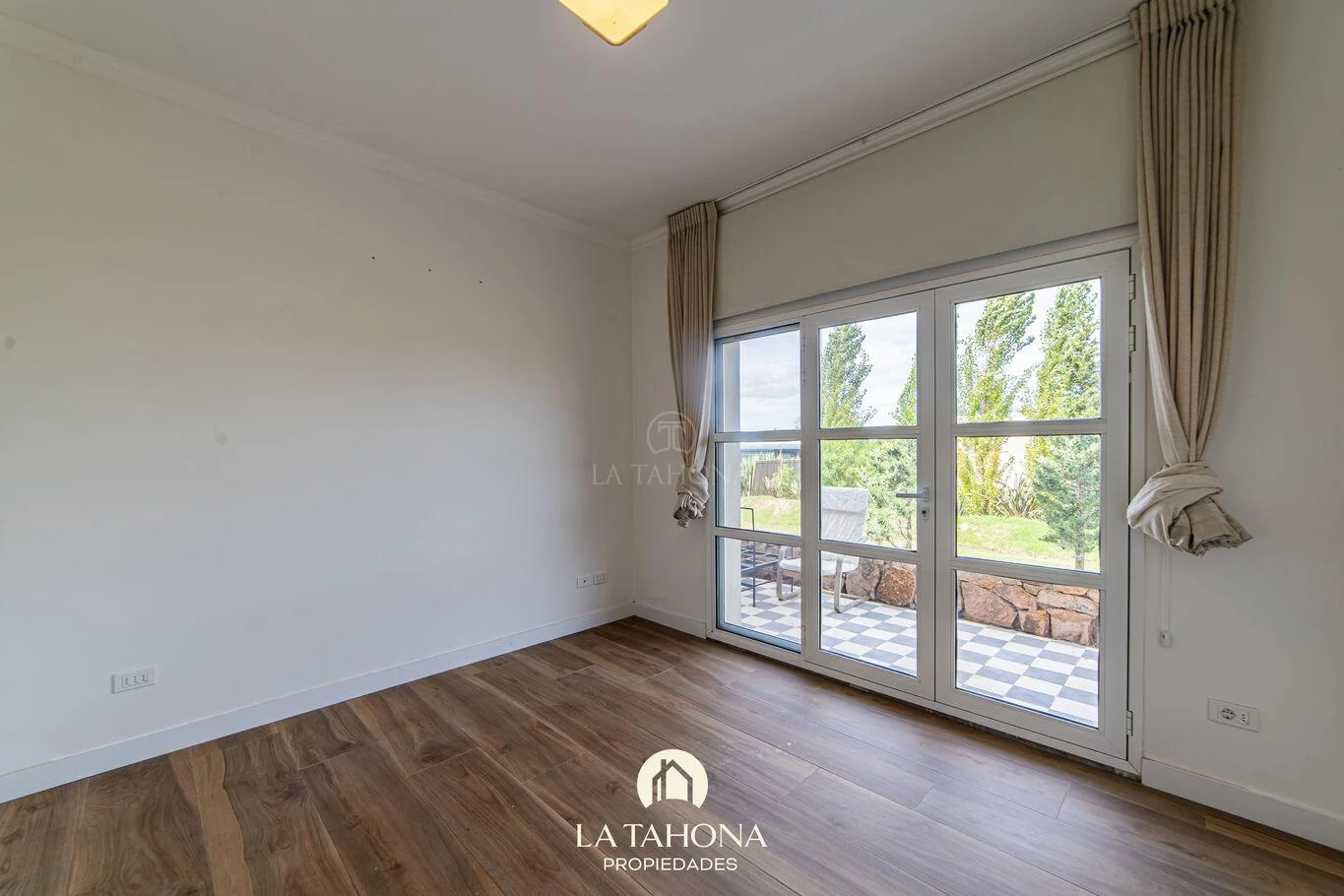 Tiene aire acondicionado en todos los ambientes y estufa a leña en el living/comedor. Además, cuenta con una cocina equipada con anafe, horno, campana y calefón.