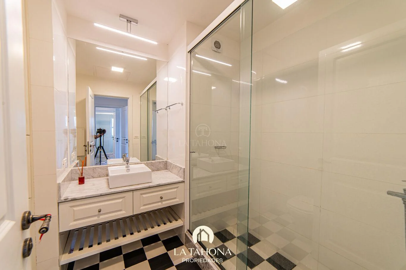 Inmobiliaria La Tahona Oficial - Beneficios exclusivos para nuestros clientes Planta Alta Area 100m 2 dormitorios – 1 en suite con vestidor Living comedor Cocina con estufa a leña Terraza con parrillero. Aire acondicionado en todos los ambientes Lavadero común