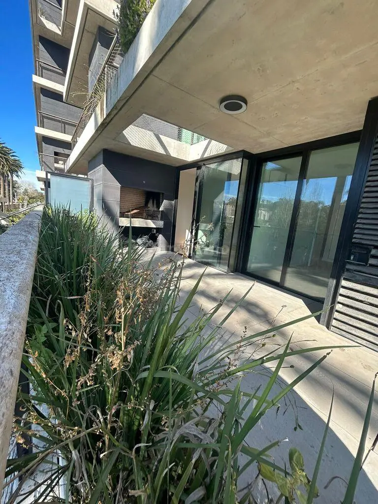 Hall de entradal, living comedor con salida a una gran terraza con parrillero y pequeño Jardin, cocina semi integrada (equipada con horno-anafe y extractor).