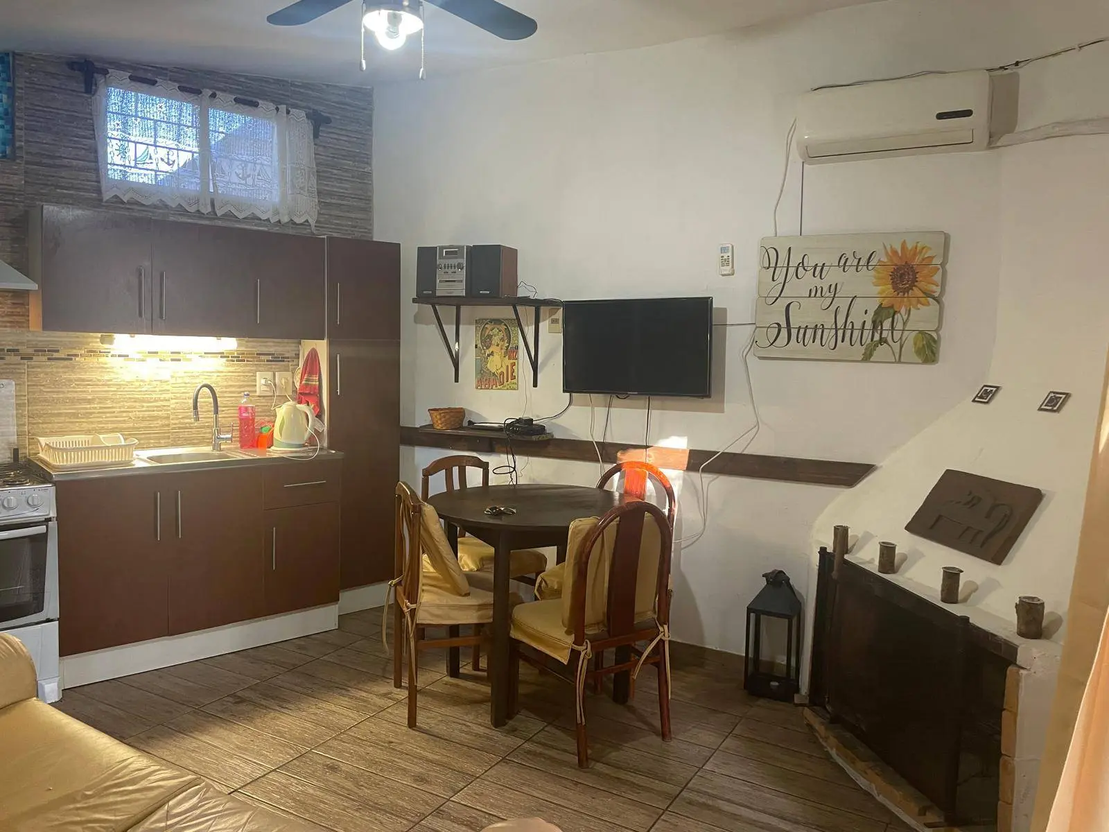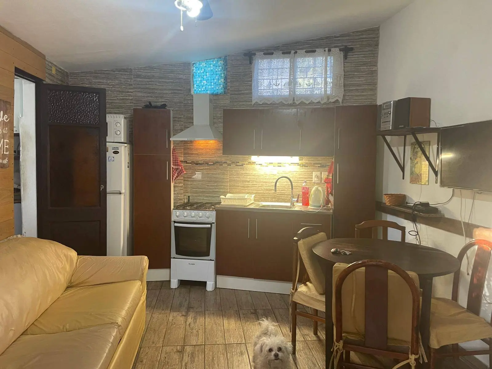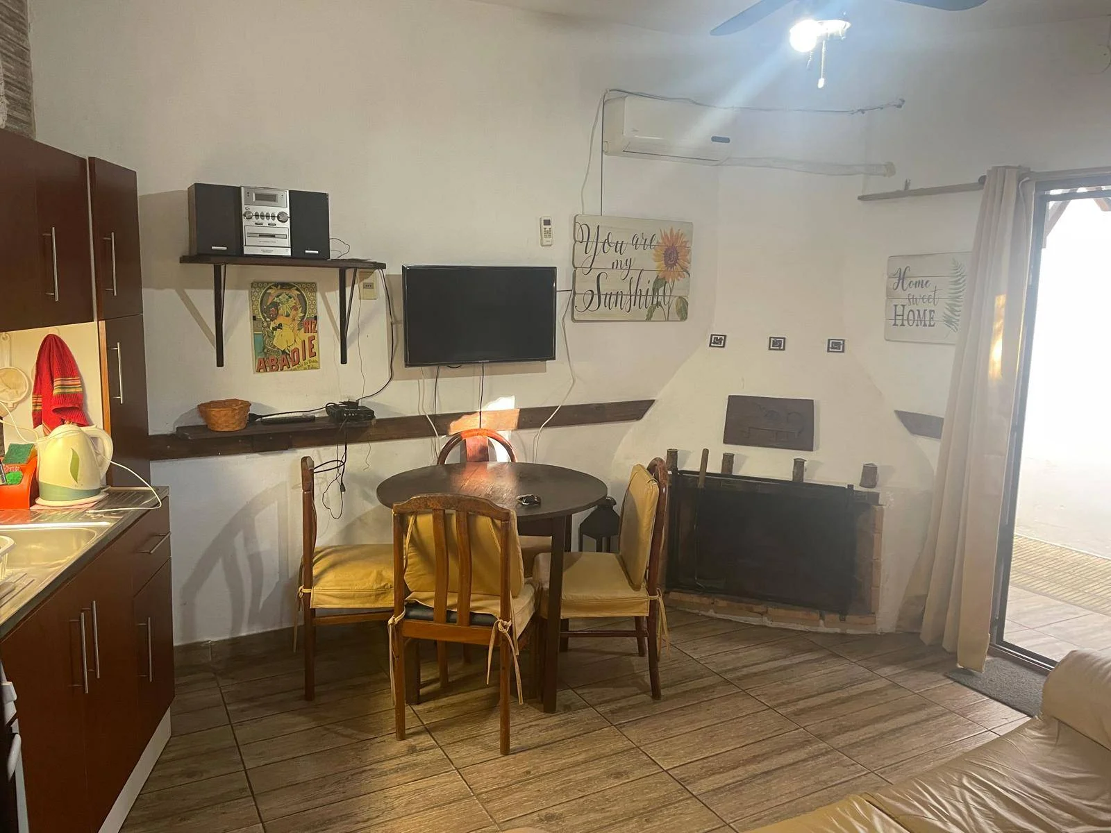 El apartamento cuenta con un dormitorio, un baño y un luminoso living comedor con cocina integrada, que incluye estufa a leña y aire acondicionado, asegurando confort durante todo el año.