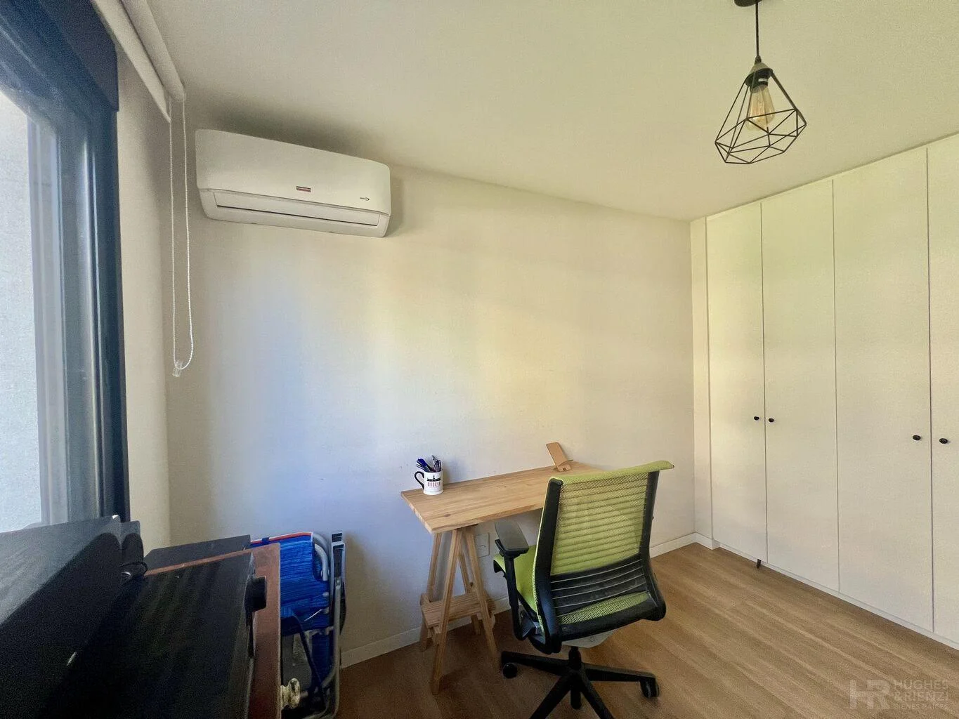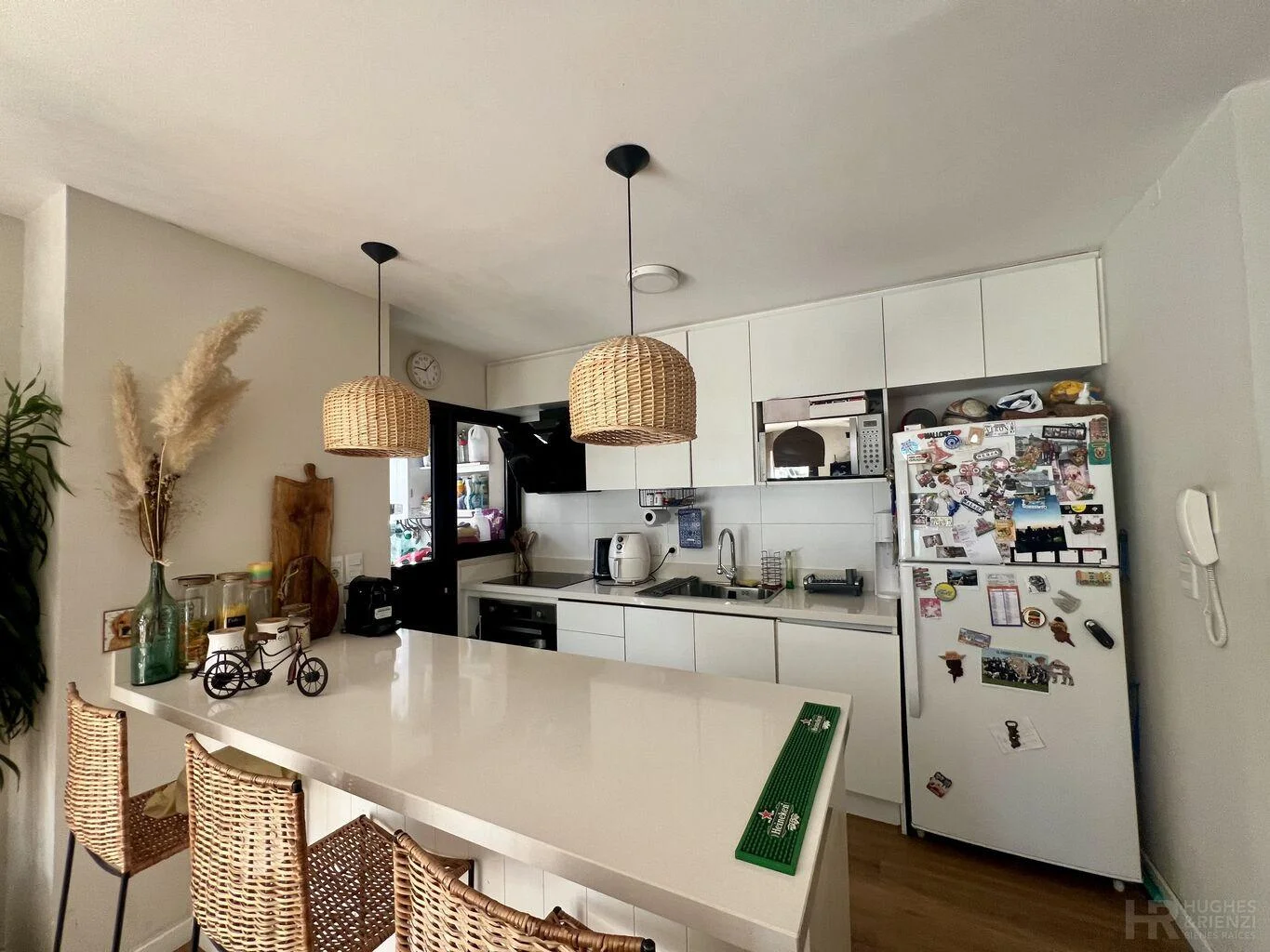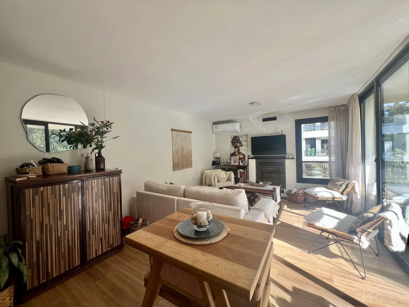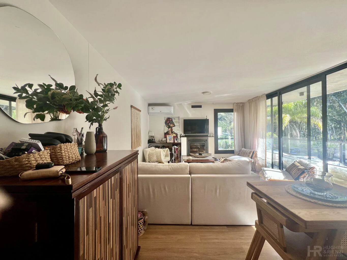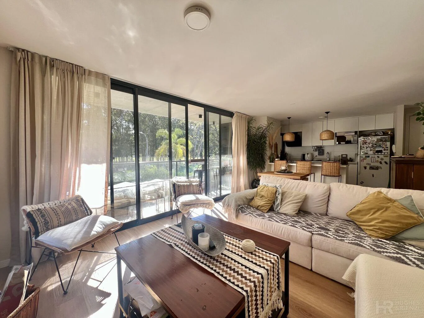 Divino apartamento en Parque Madero con vista al parque Living-comedor apaisado con estufa a leña de AA con salida a terraza con parrillero. Cocina integrada por barra y terraza lavadero. 2 dormitorios y 2 baños completos, principal en suite con vestidor. Calefacción por losa radiante individual a gas. Cochera para un auto. Box. Seguridad monitoreada 24hs y portería con horario. Piscina y barbacoa de uso común.