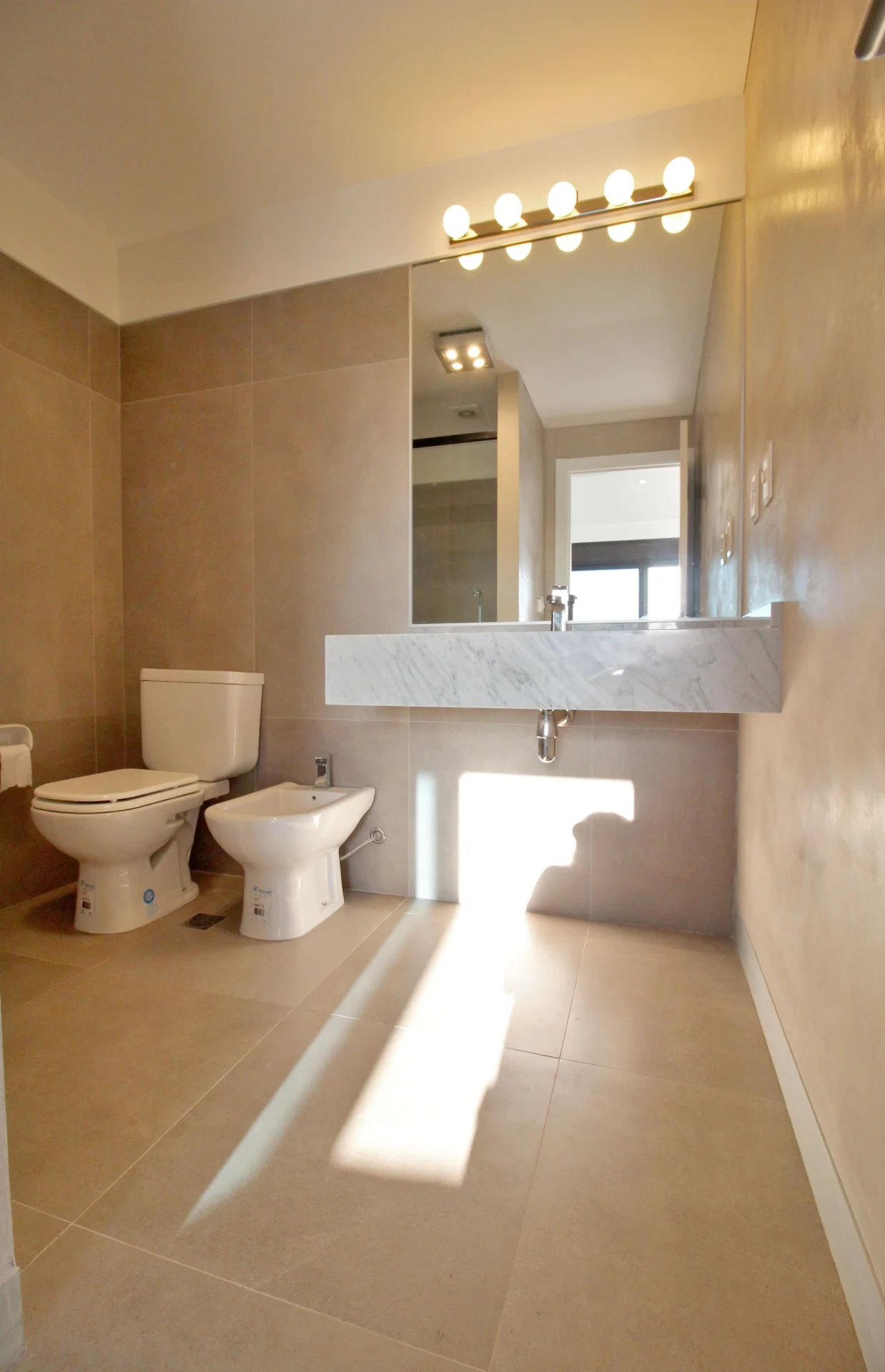 Los dormitorios tienen placares empotrados, y el principal suma placares con puertas de vidrio esmerilado.