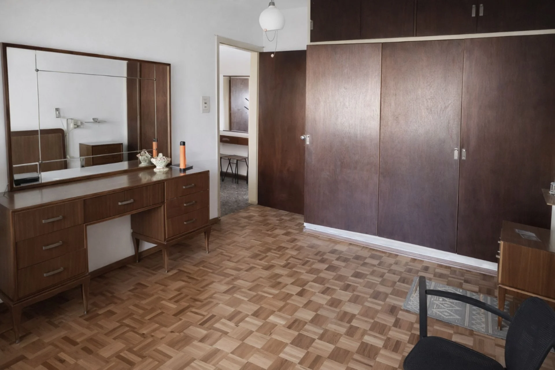 Los tres dormitorios amplios cuentan con placares empotrados de calidad y pisos de parquet en excelente estado. Orientados hacia el jardín este, comparten un baño completo funcional y un segundo baño (hoy baño social) con todas las conexiones para su transformación a baño completo.
