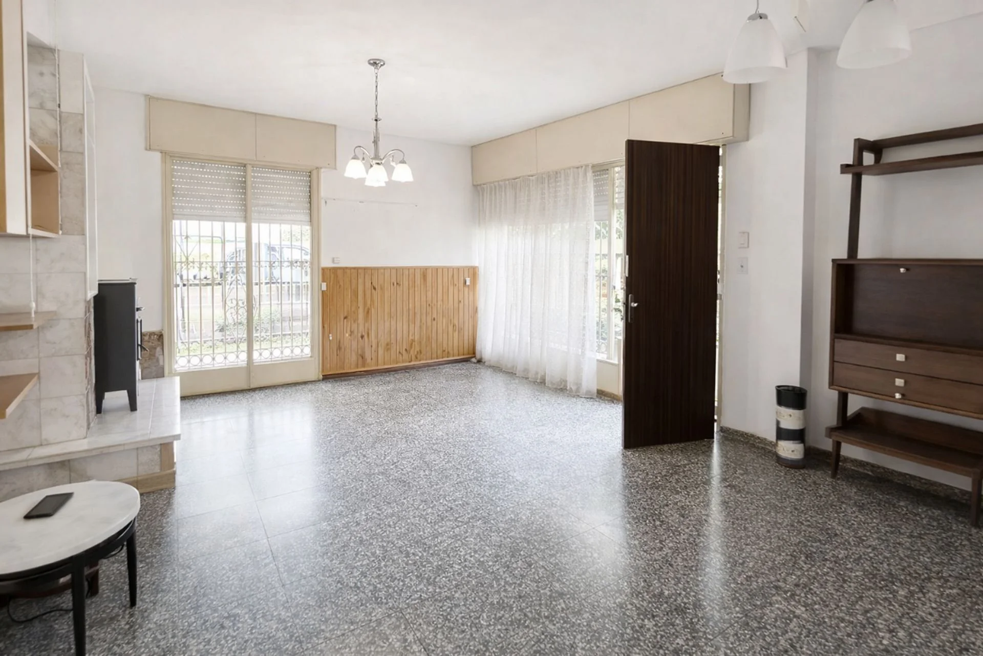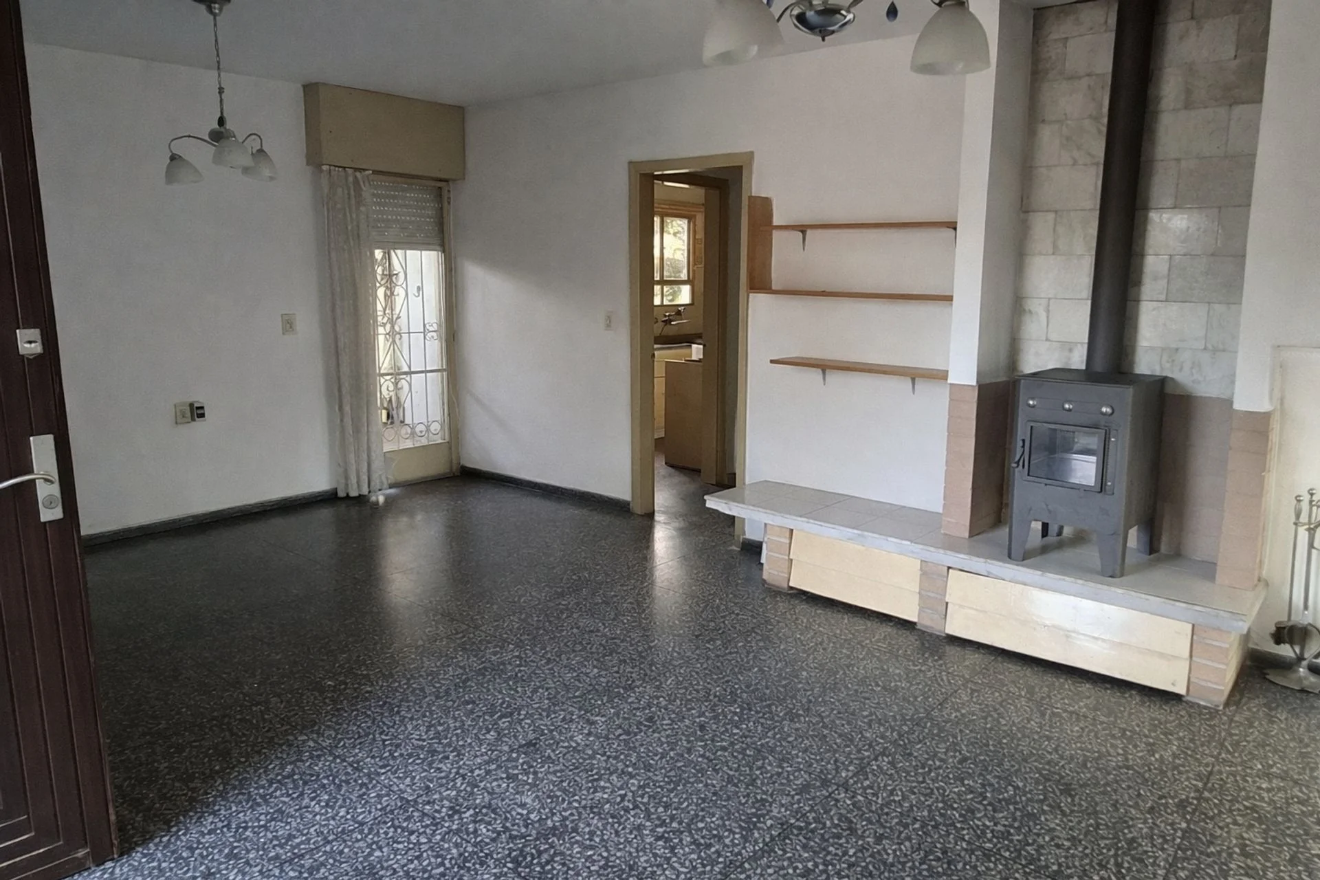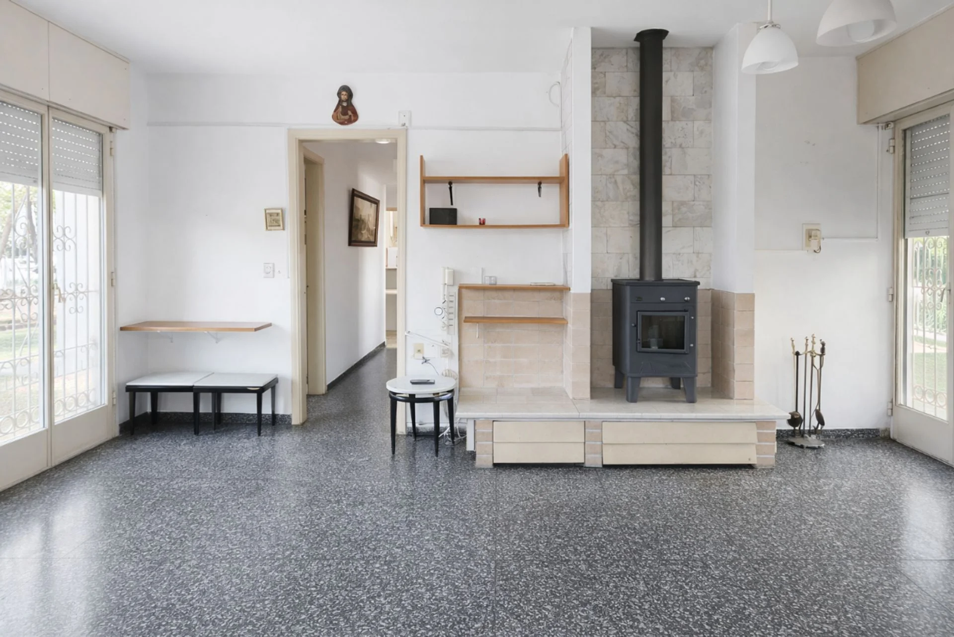 El acceso se realiza a través de un jardín delantero que conduce a un living comedor luminoso, caracterizado por ventanales perimetrales que generan una conexión visual con el exterior. Un detalle destacable es la estufa de alto rendimiento a leña, elemento que aporta calidez al ambiente.