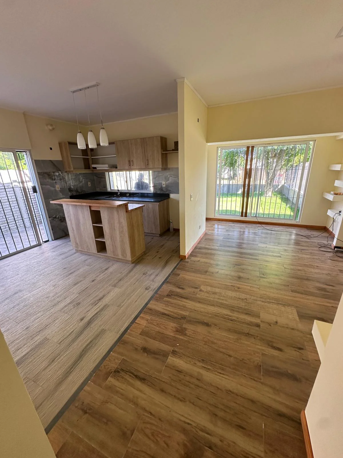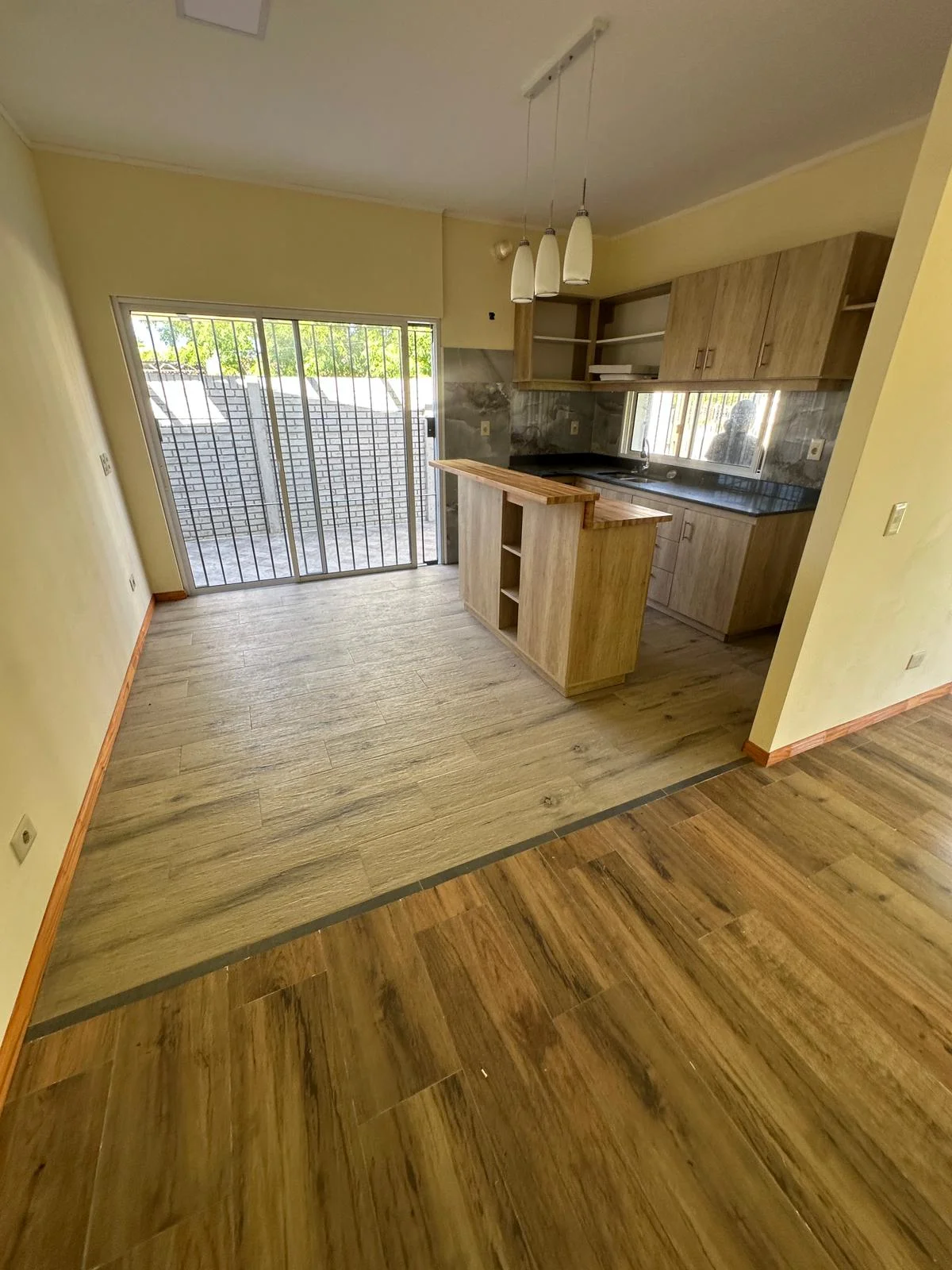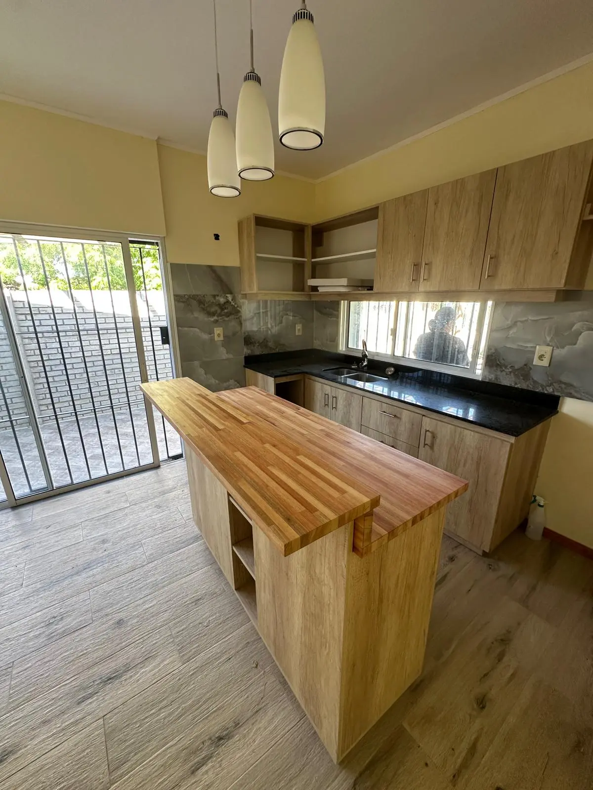 -Cocina semi integrada con isla móvil y placares