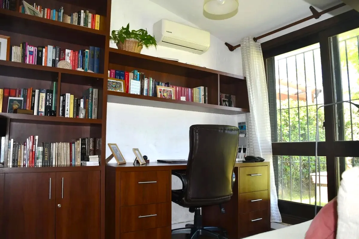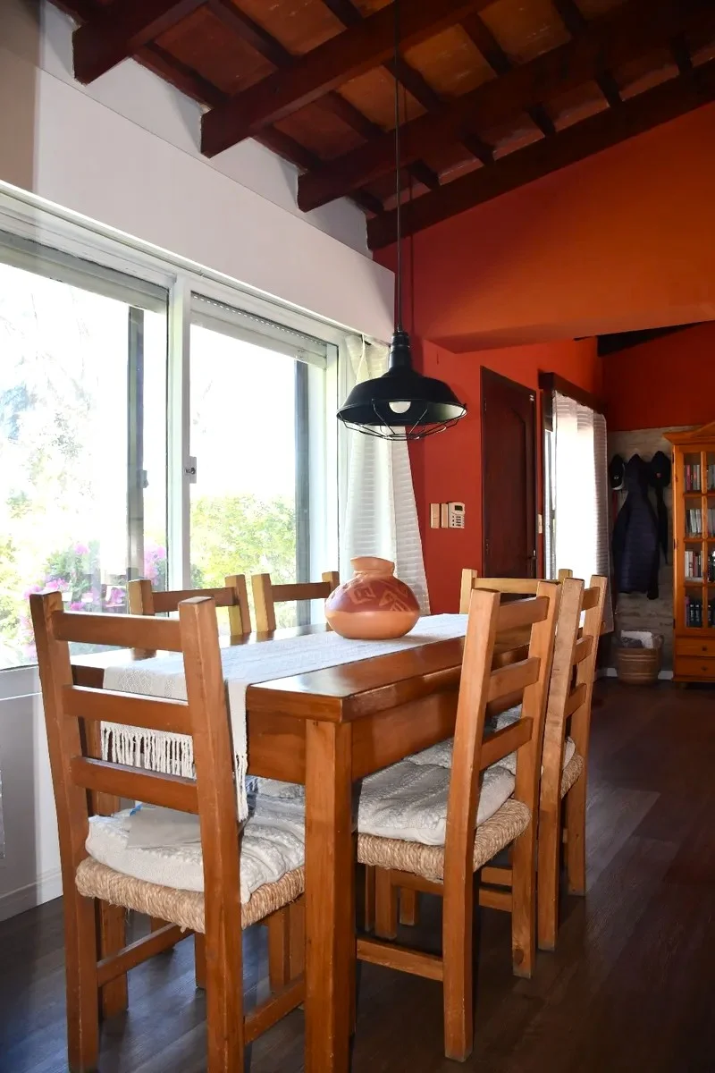 El fondo destaca por su piscina climatizada por energía solar, barbacoa cerrada equipada, baño social, ducha exterior, riego automático, galpón y entrada lateral independiente. El complejo suma espacios verdes cuidados, playa en el lago y cámaras en todo el predio. Al frente, jardín con riego y espacio para tres vehículos. Una casa funcional, segura y disfrutable todo el año.