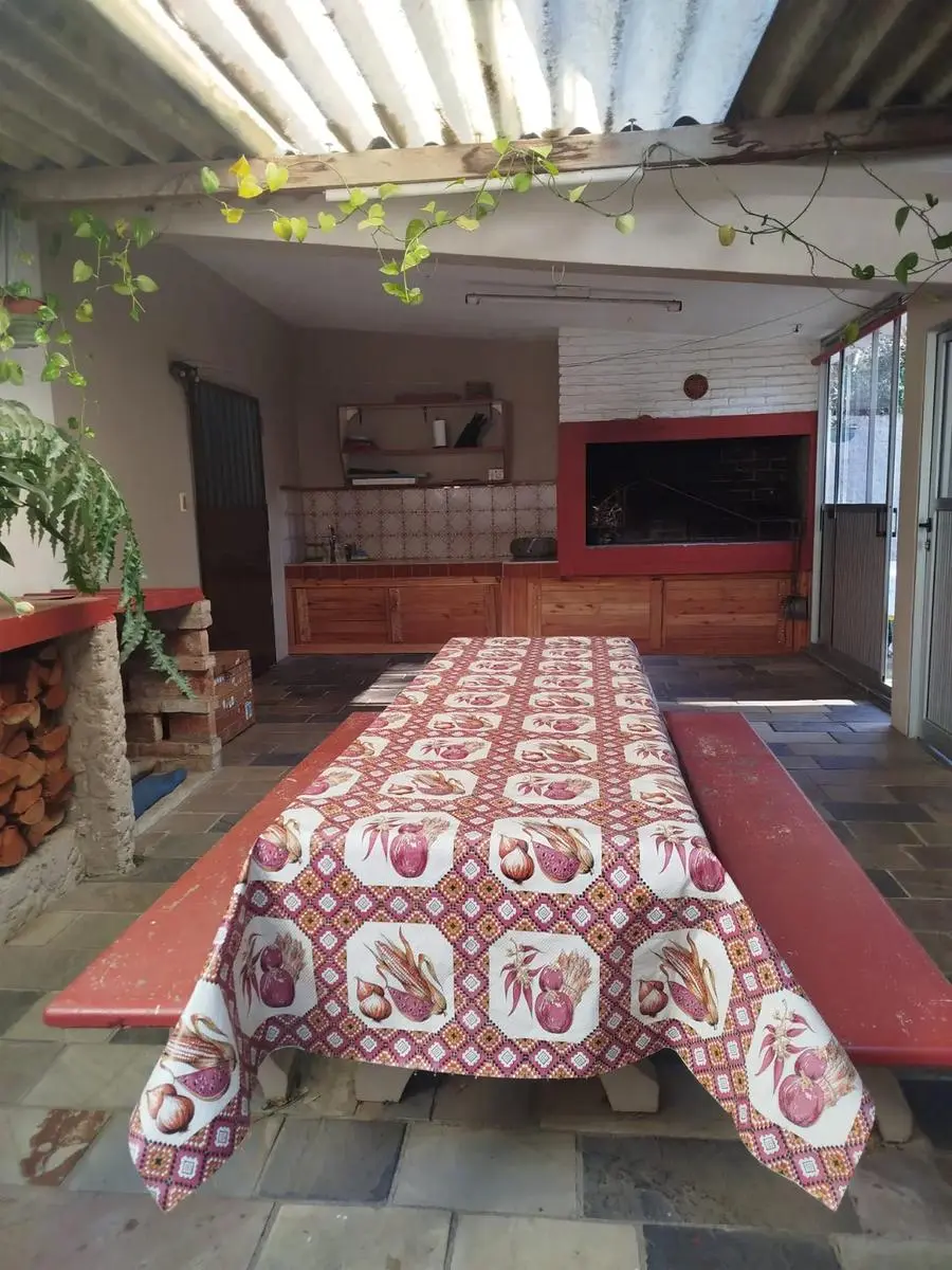 En el exterior, la propiedad está pensada para el disfrute familiar y social: parrillero techado, horno de pizza, piscina, sistema de riego con pozo propio y amplios espacios verdes. Además, ofrece garage cerrado para un vehículo y cochera techada para dos más.