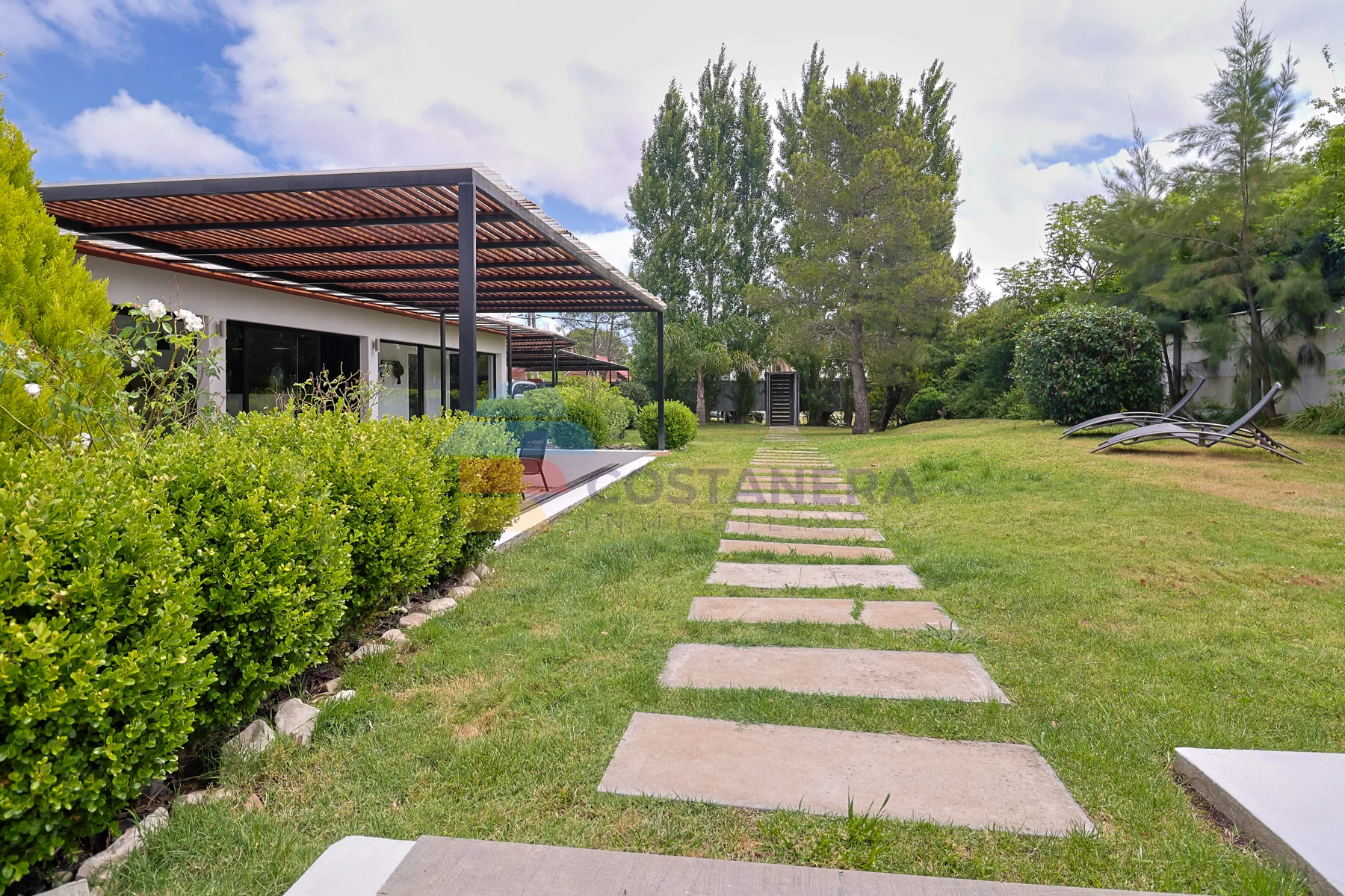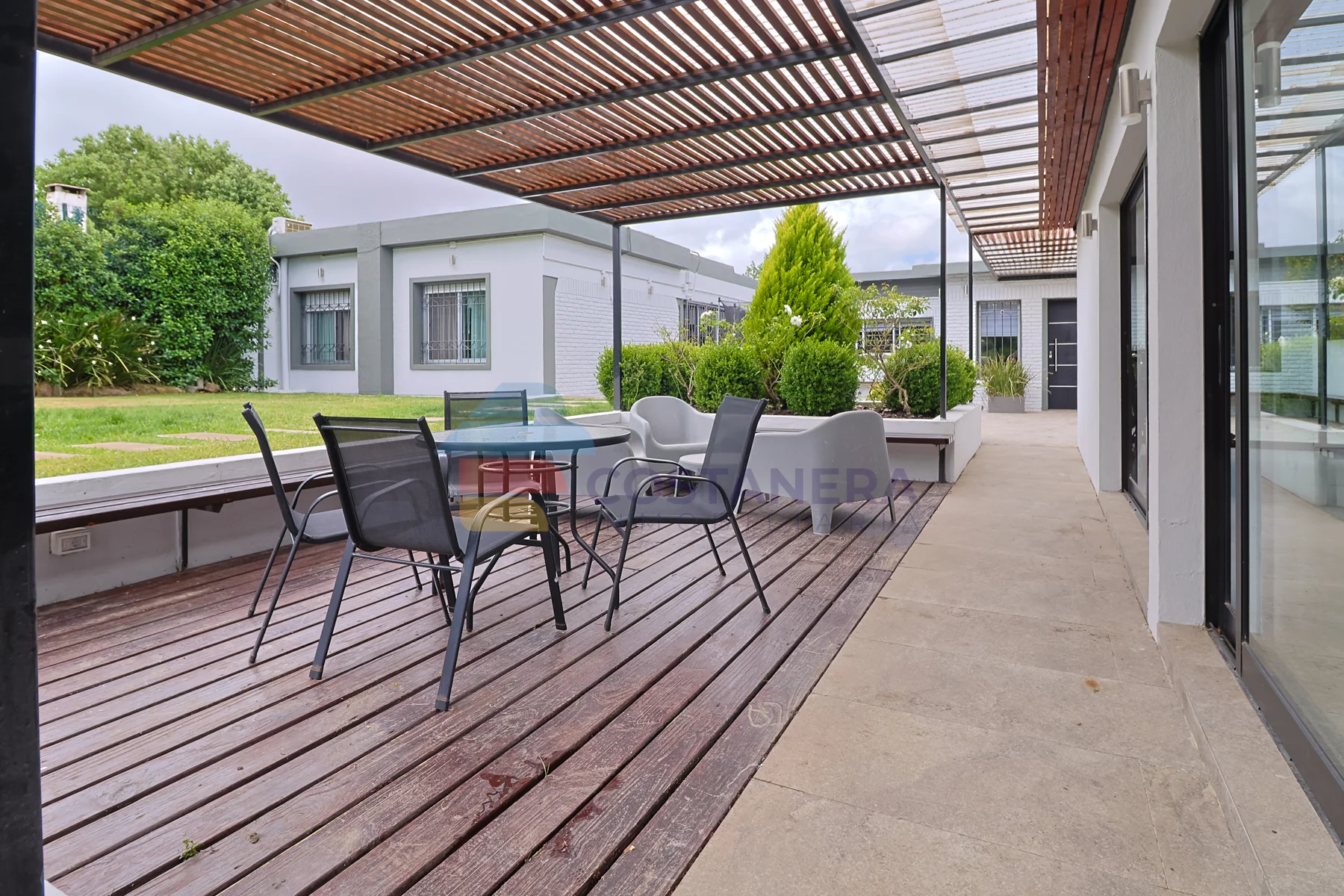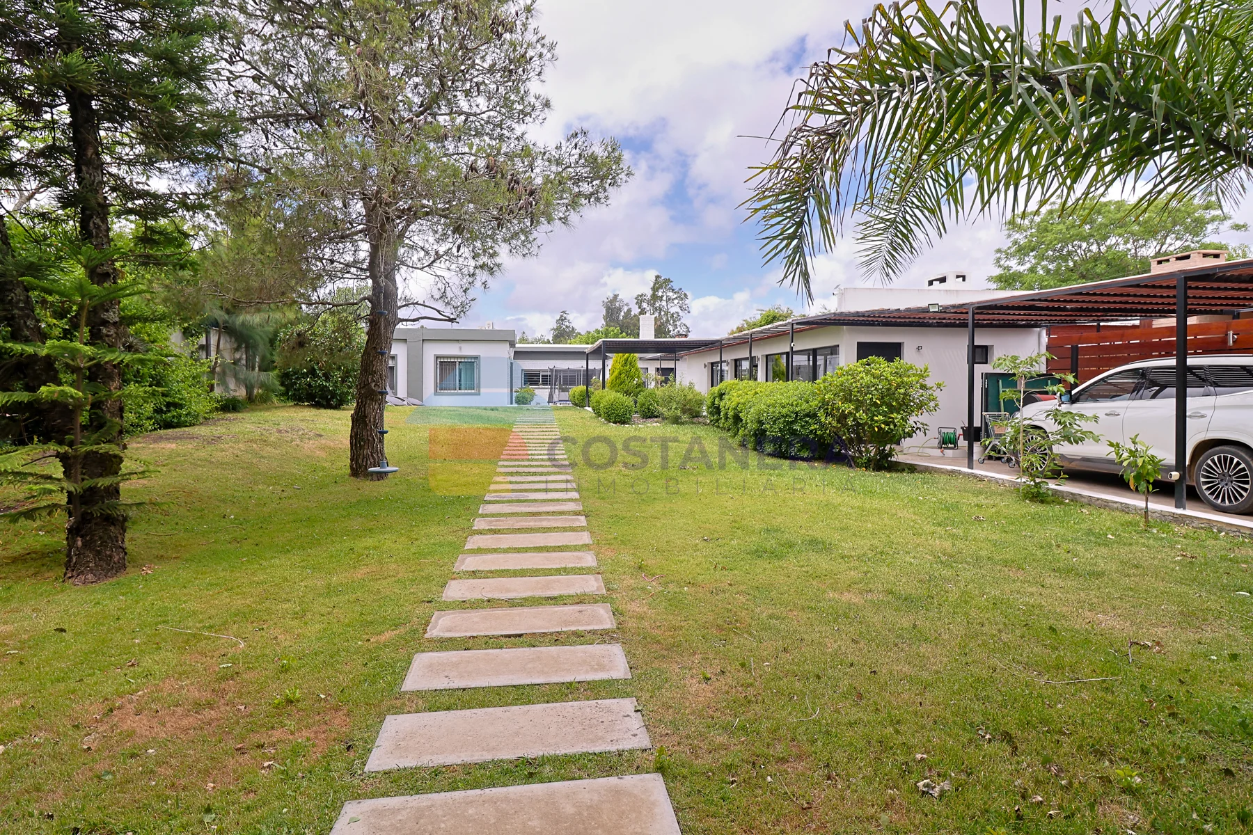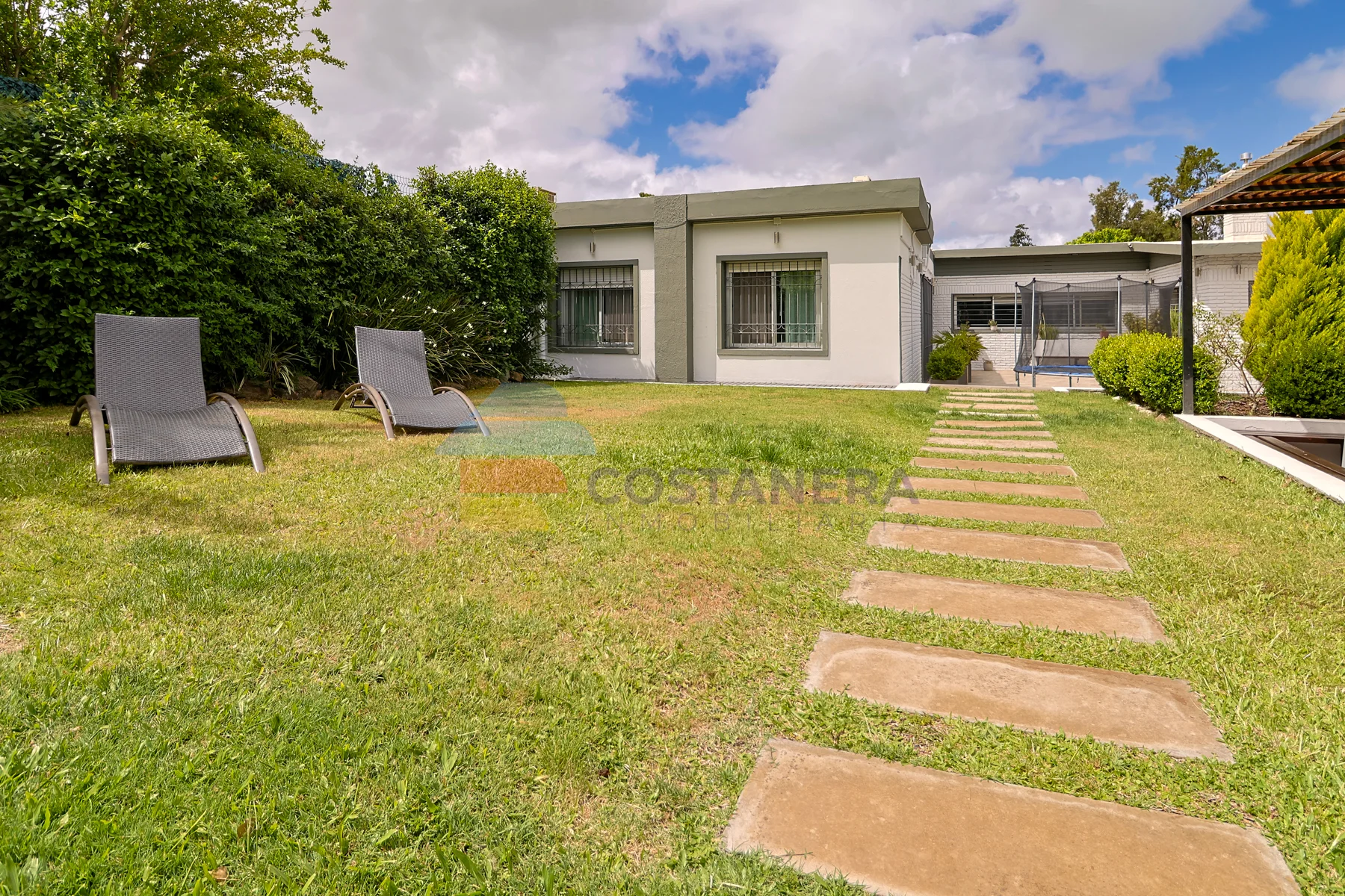 El exterior es un verdadero oasis: una inmensa barbacoa con baño completo, ideal para reuniones y celebraciones, y una pérgola con deck que invita al disfrute al aire libre. La doble cochera techada ofrece comodidad y protección para sus vehículos. El amplísimo jardín presenta la posibilidad de agregar una piscina, creando un espacio de esparcimiento personalizado.