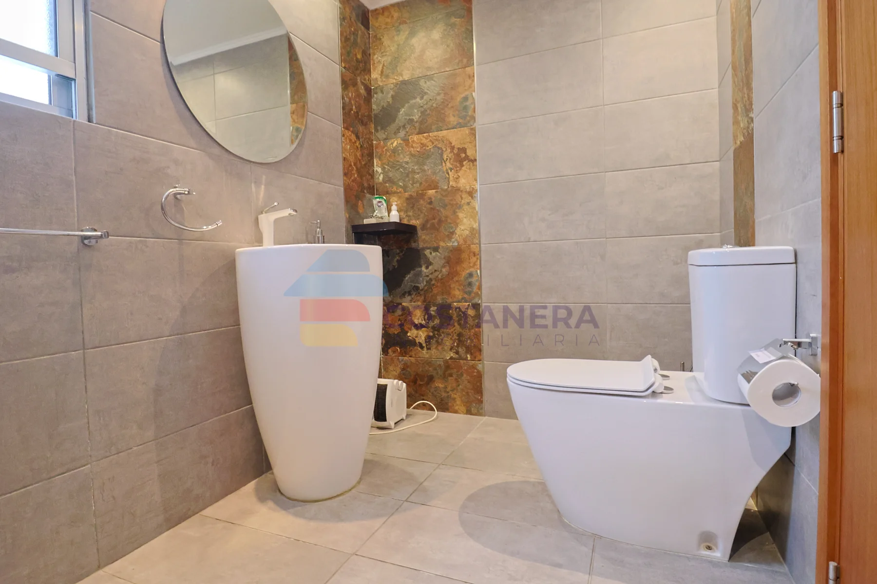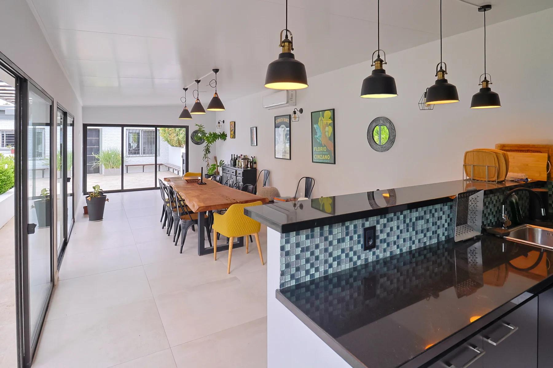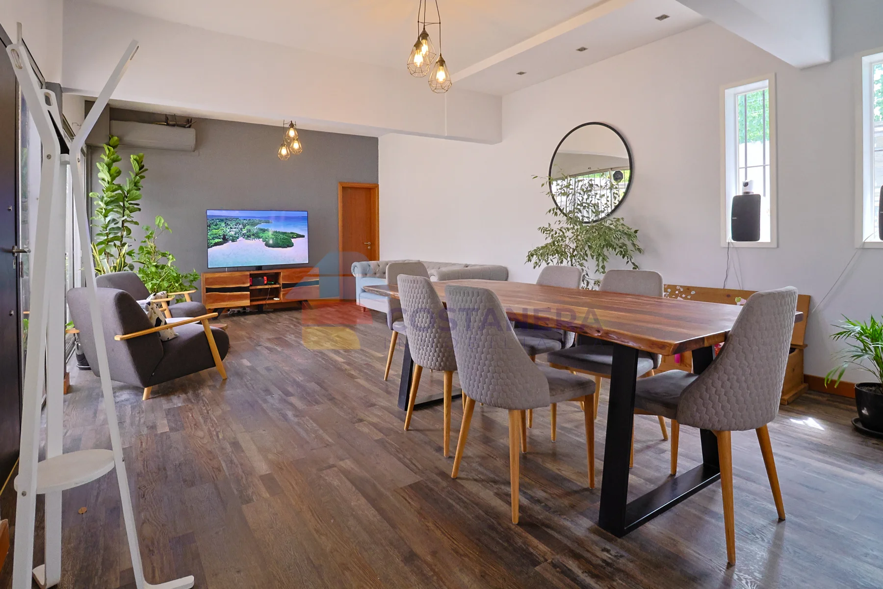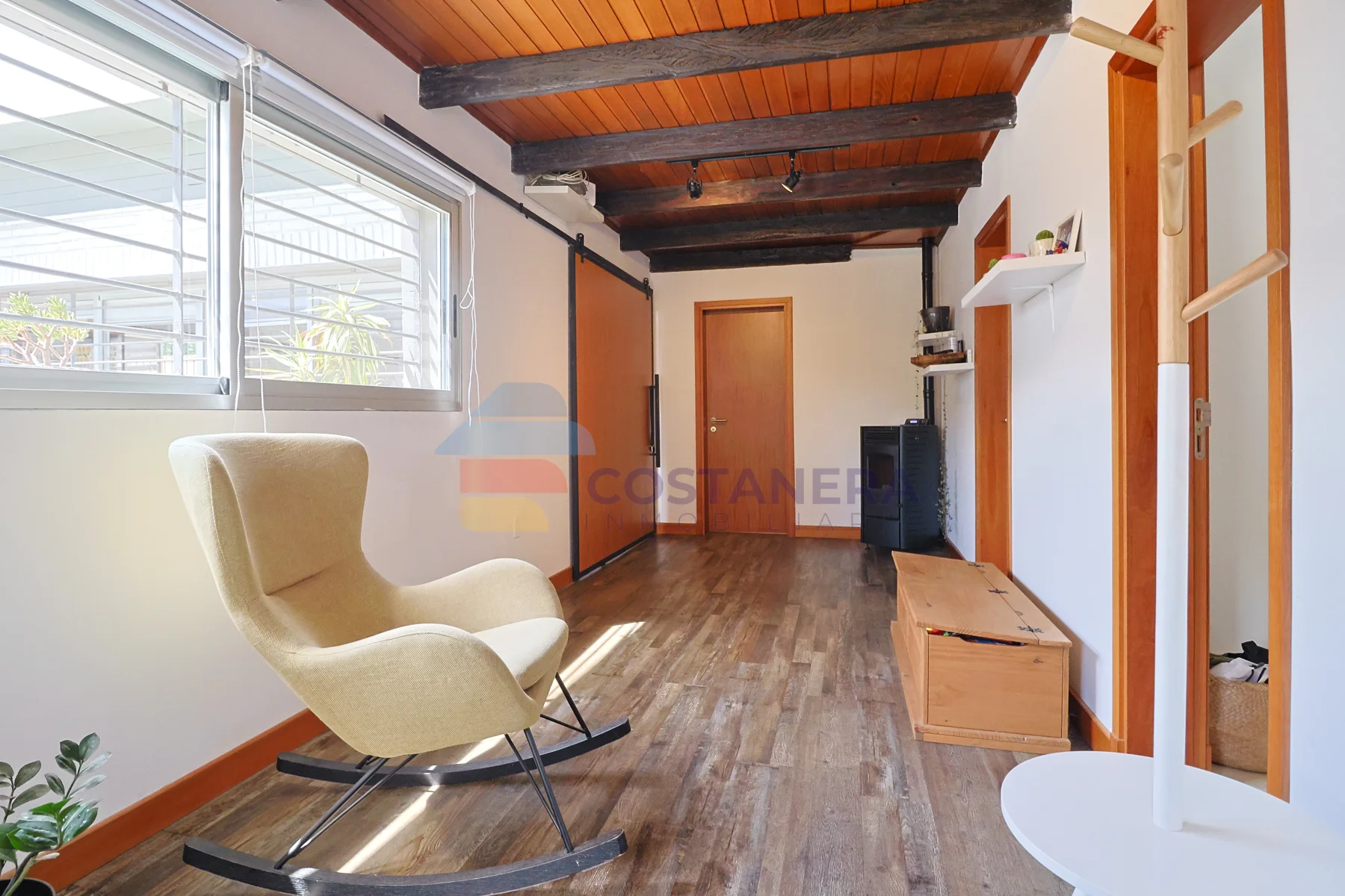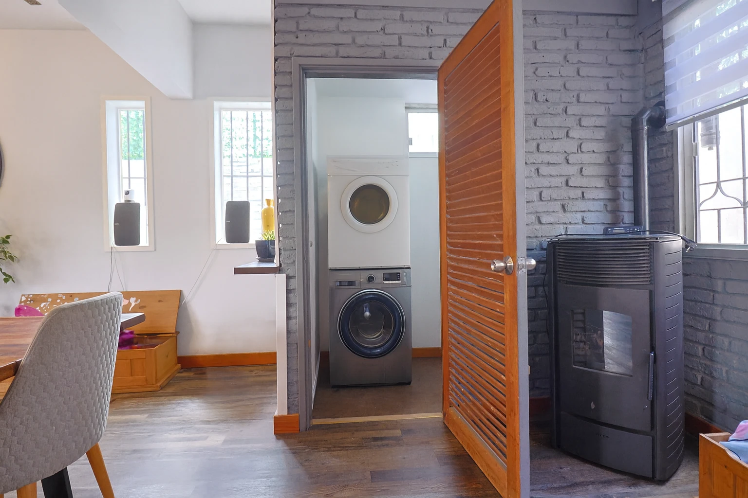 Se destacan la excelente carpintería y las terminaciones de alta gama, con materiales nobles que aportan calidez y durabilidad. Las aberturas de doble vidrio hermético (DVH) aseguran un óptimo aislamiento térmico y acústico, complementadas con rejas en todas ellas para mayor seguridad. Todos los ambientes están equipados con aire acondicionado, y para los meses más fríos, la casa cuenta con dos estufas a pellet y una caldera a gas, garantizando un ambiente acogedor en todo momento.