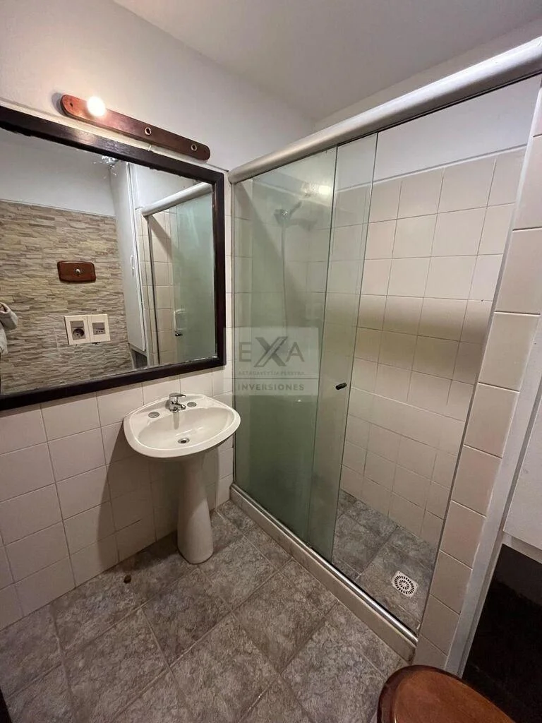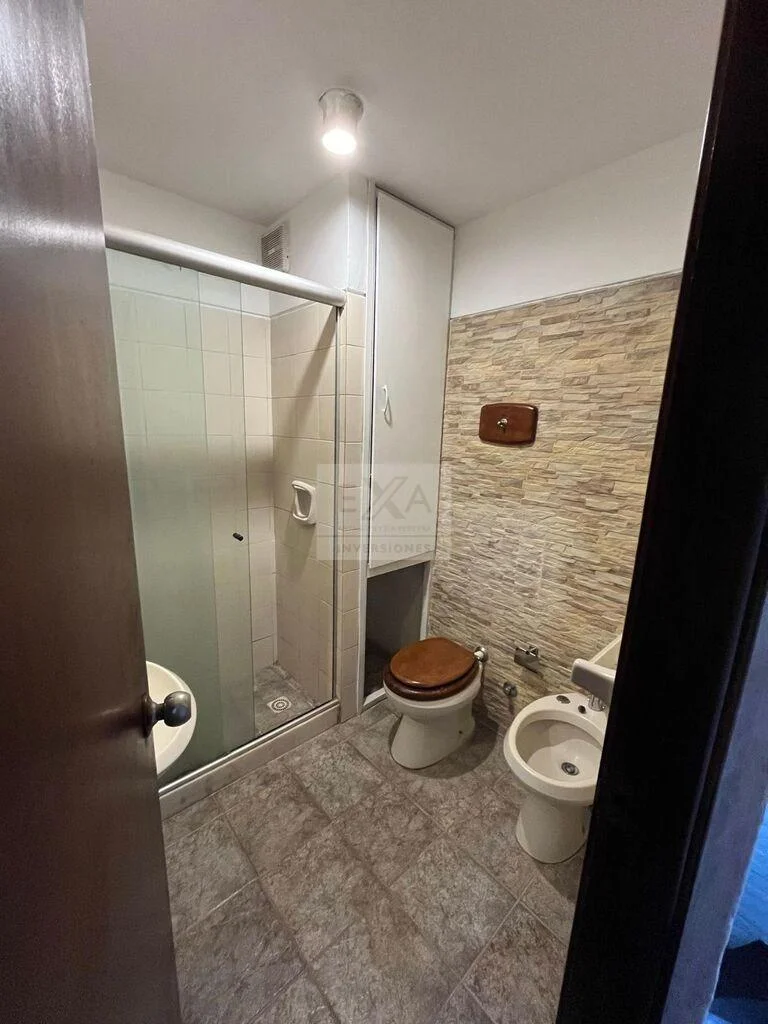 Baño completo con mampara y calefón, 1 dormitorio al frente super amplio y luminoso con salida a la terraza y aire acondicionado.