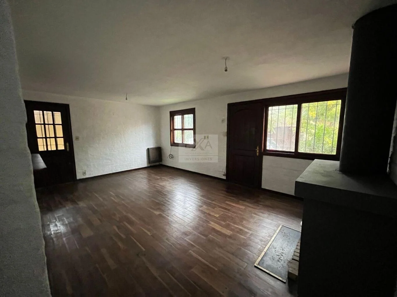 Living con estufa a leña, toilette, cocina semi integrada con barra, muebles aéreos, salida al jardín con parrillero. Cochera para dos autos.