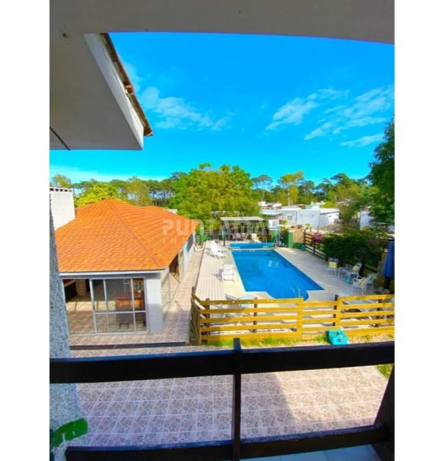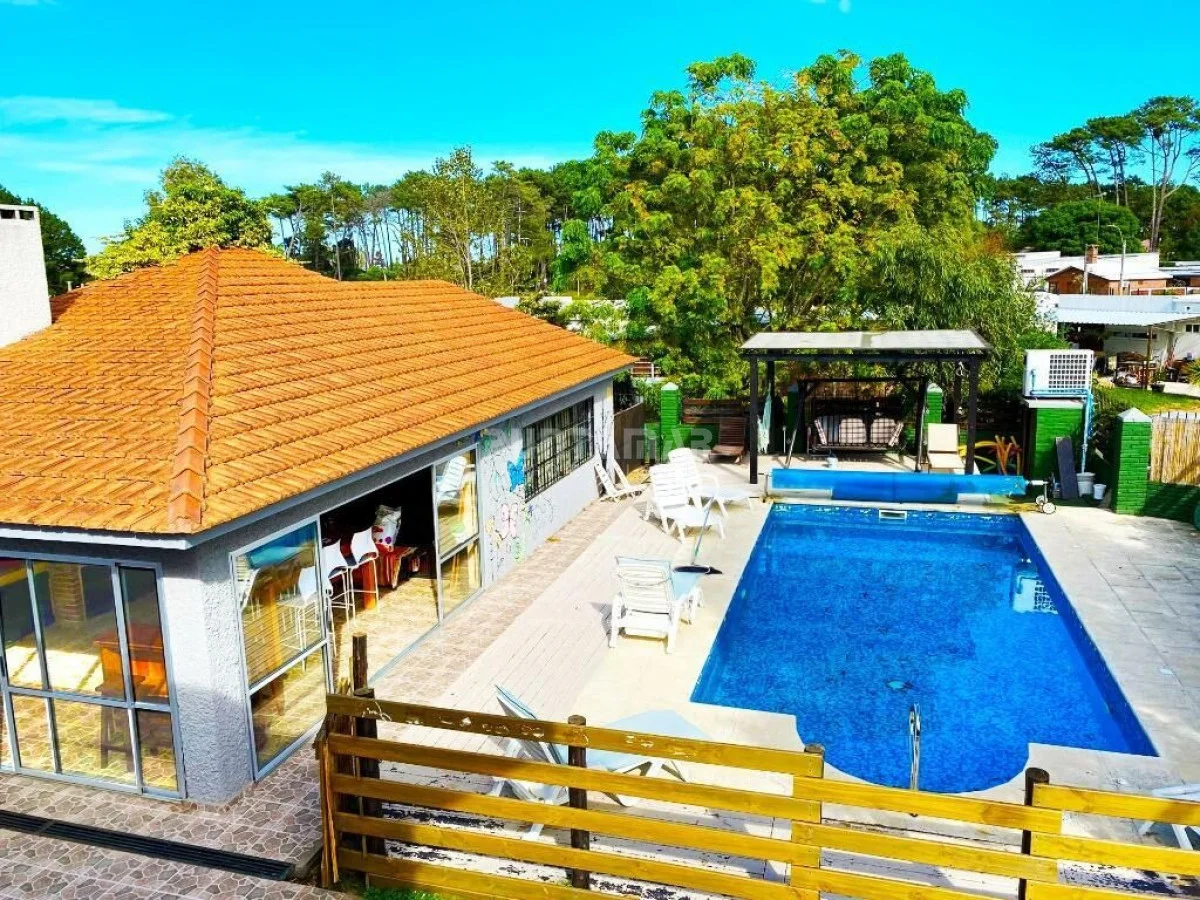 A pasos de la casa se ubica la barbacoa cerrada y súper equipada. A su lado se emplaza la gran piscina con vista al jardín.
