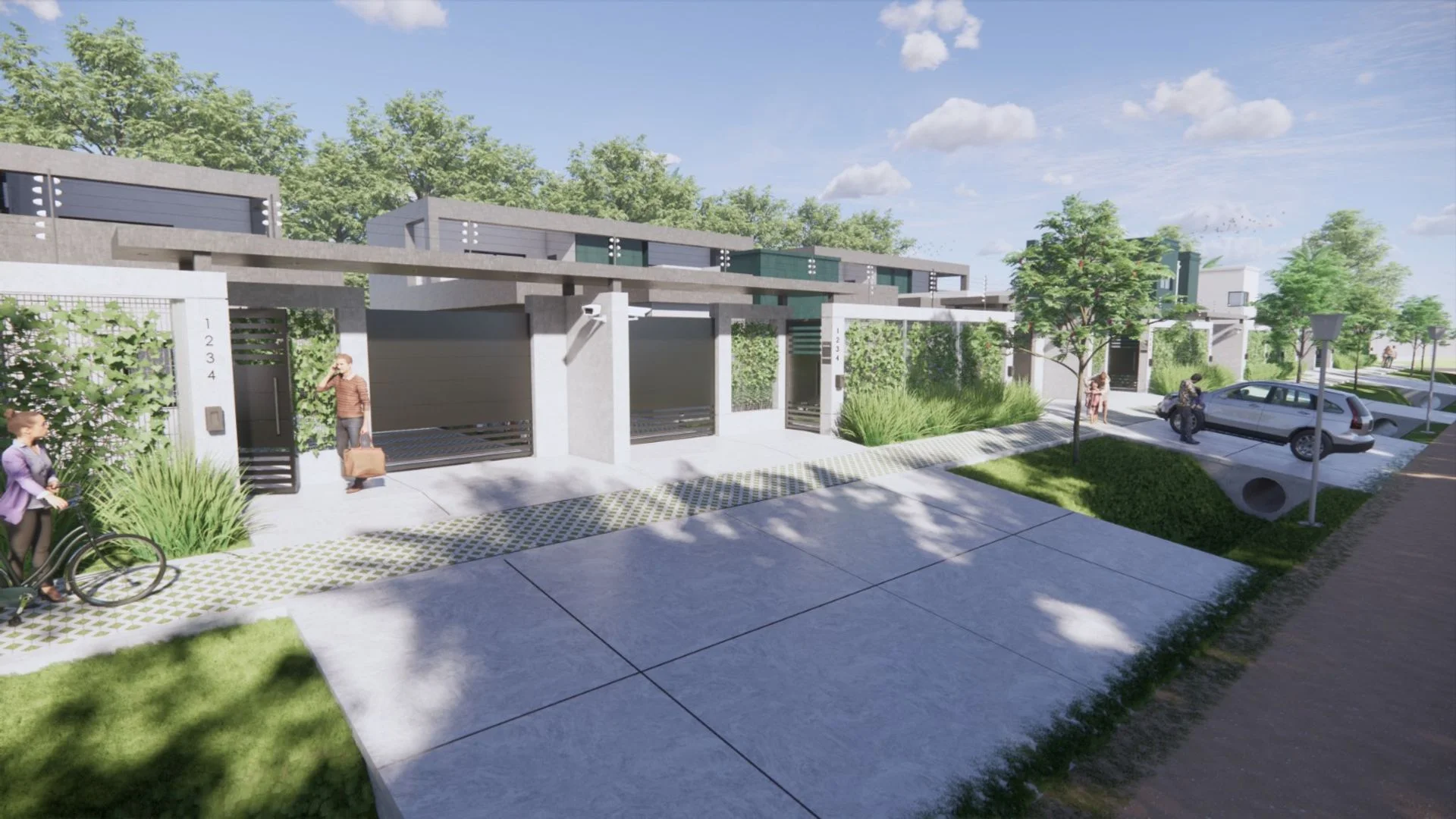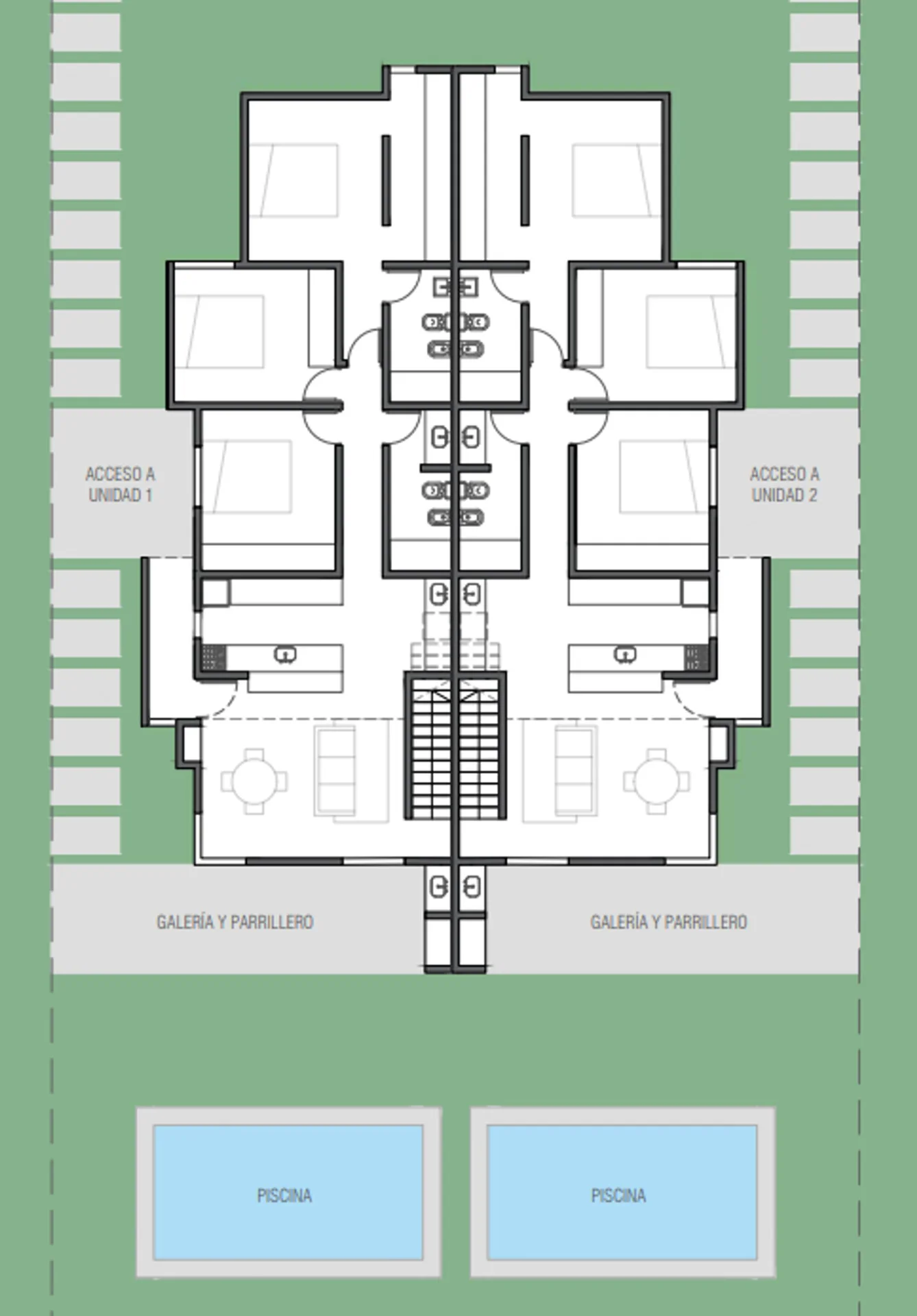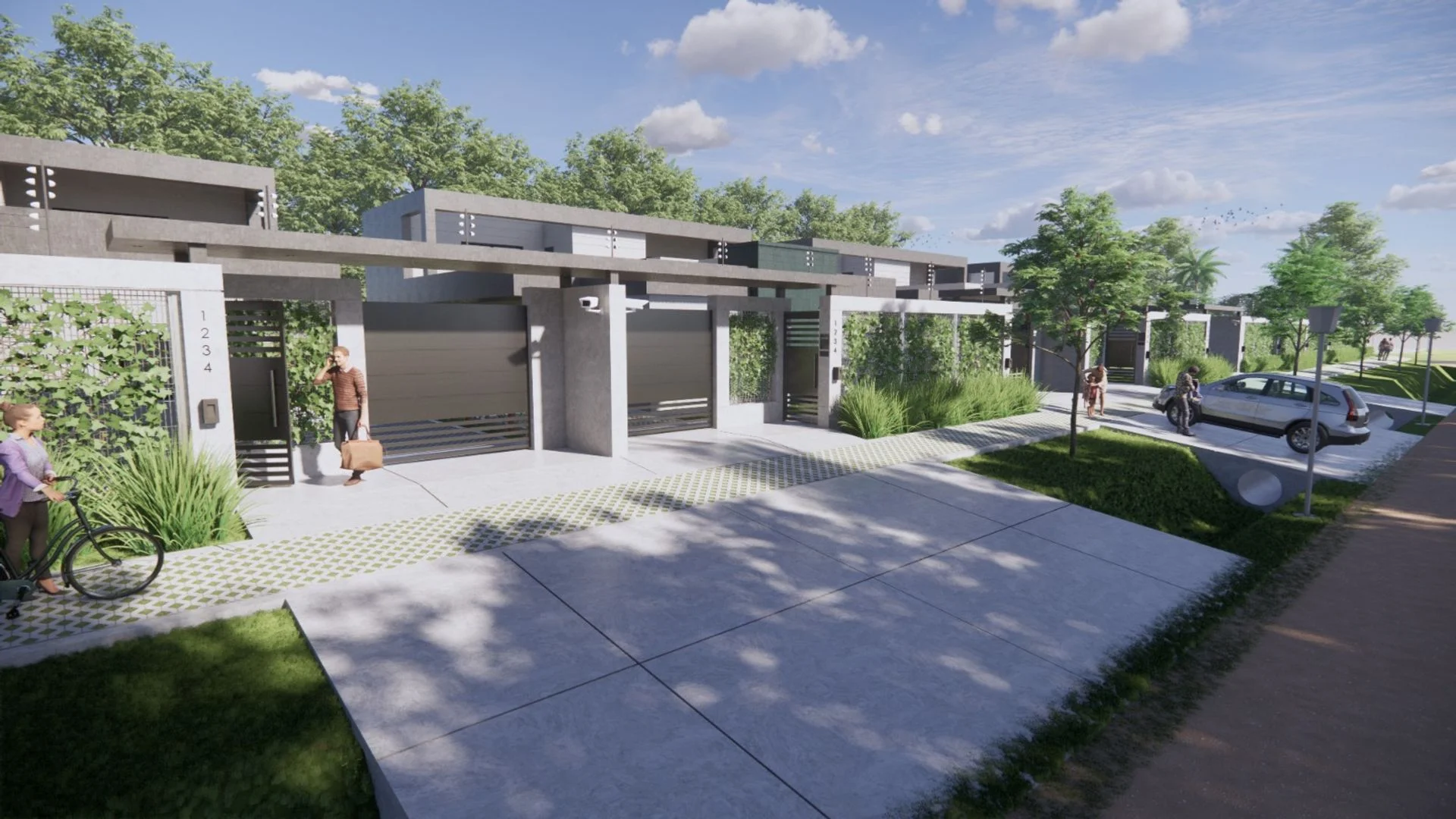 Cada vivienda contará con amplio living comedor, tres dormitorios, playroom, 3 baños, cocina integrada con lavadero, superficie aproximada de 170 mts2, 280 m2 para uso exclusivo exterior, galería con parrillero, parque con piscina (opcional) y lugar para guardar 2 autos.