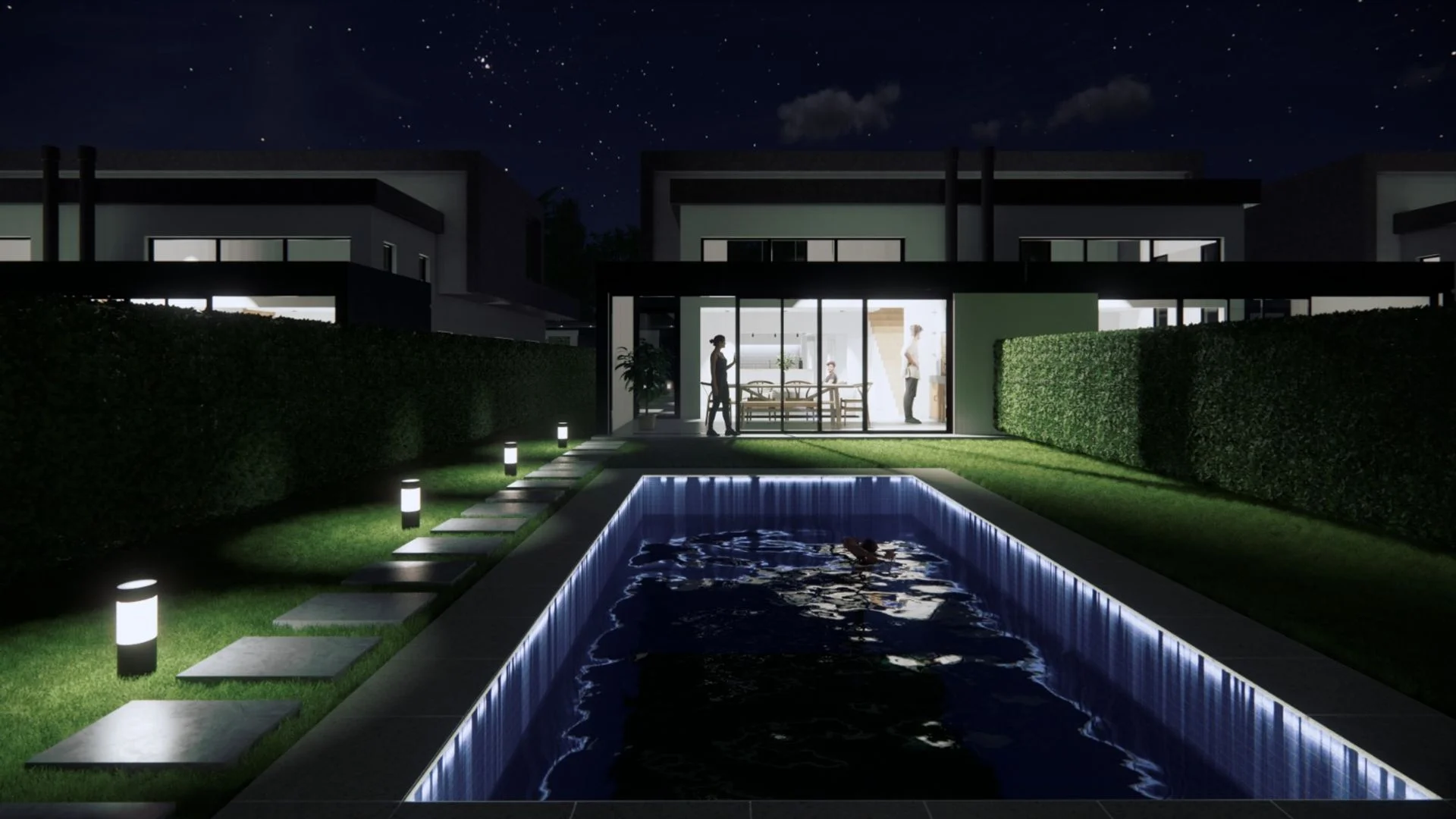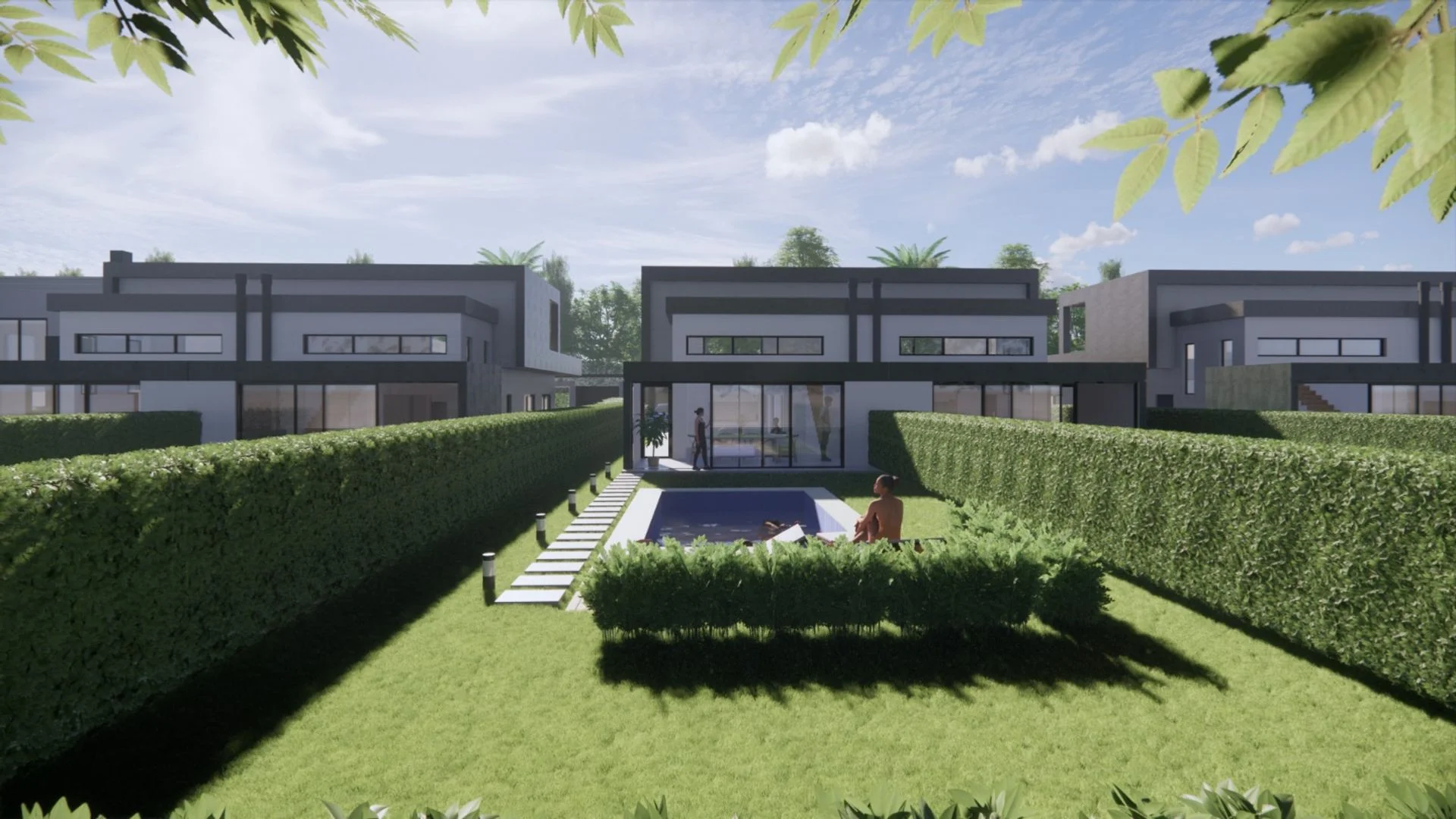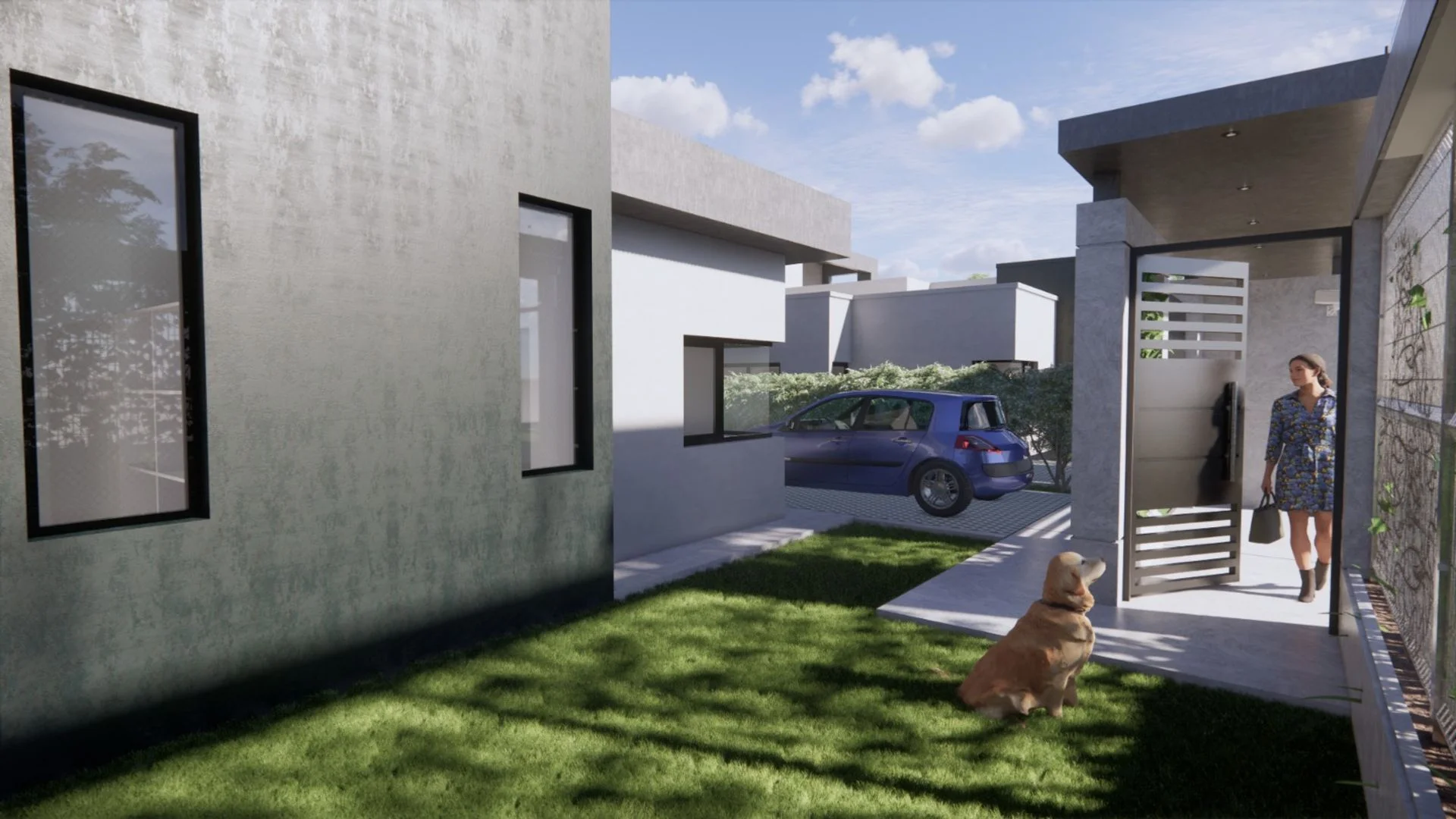 Cada vivienda contará con amplio living comedor, tres dormitorios, playroom, 3 baños, cocina integrada con lavadero, superficie aproximada de 170 mts2, 280 m2 para uso exclusivo exterior, galería con parrillero, parque con piscina (opcional) y lugar para guardar 2 autos.