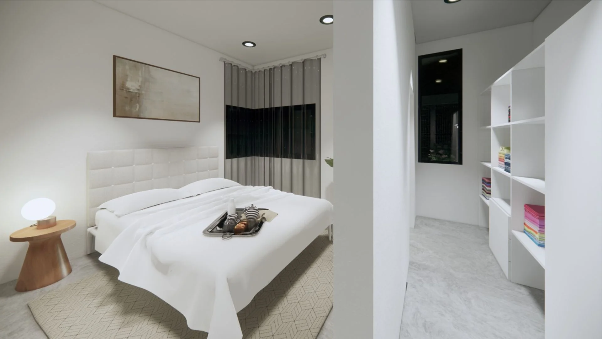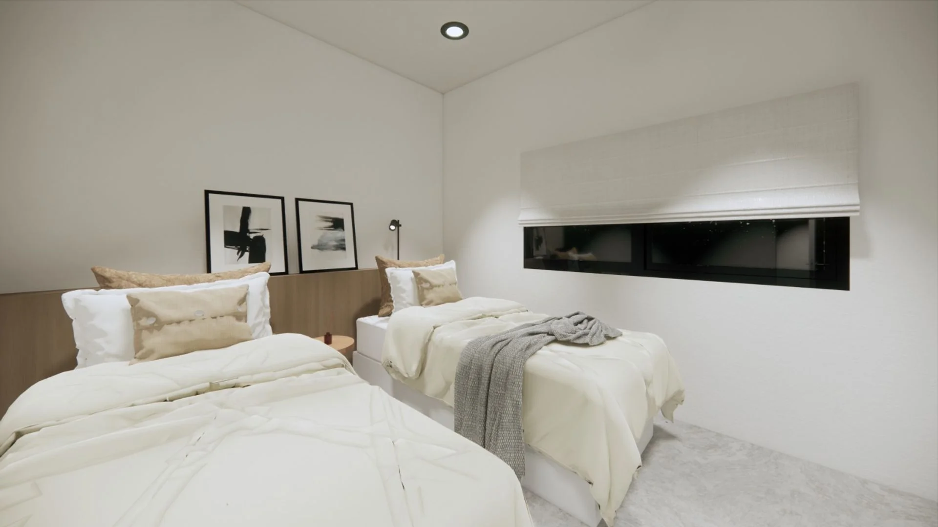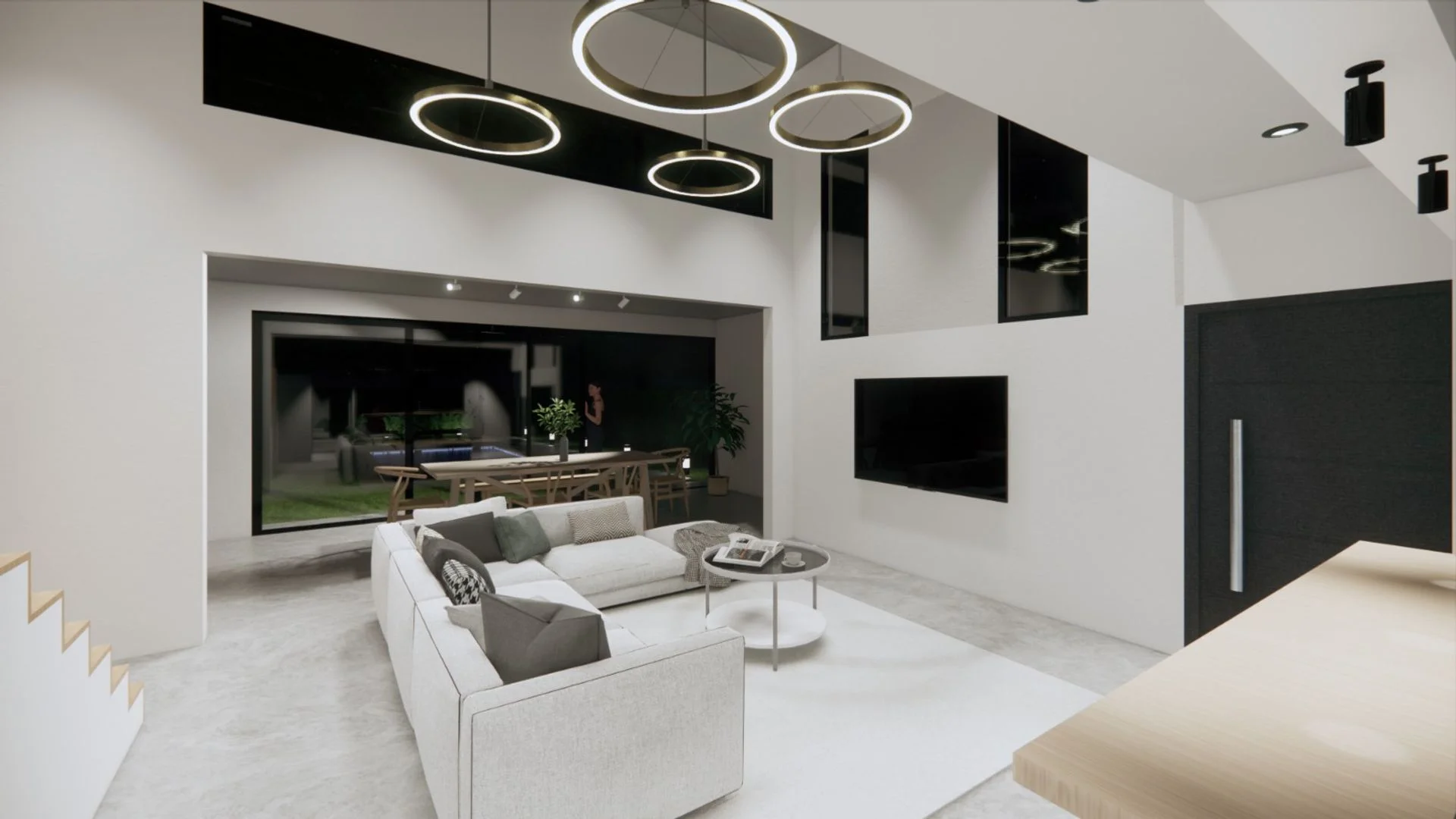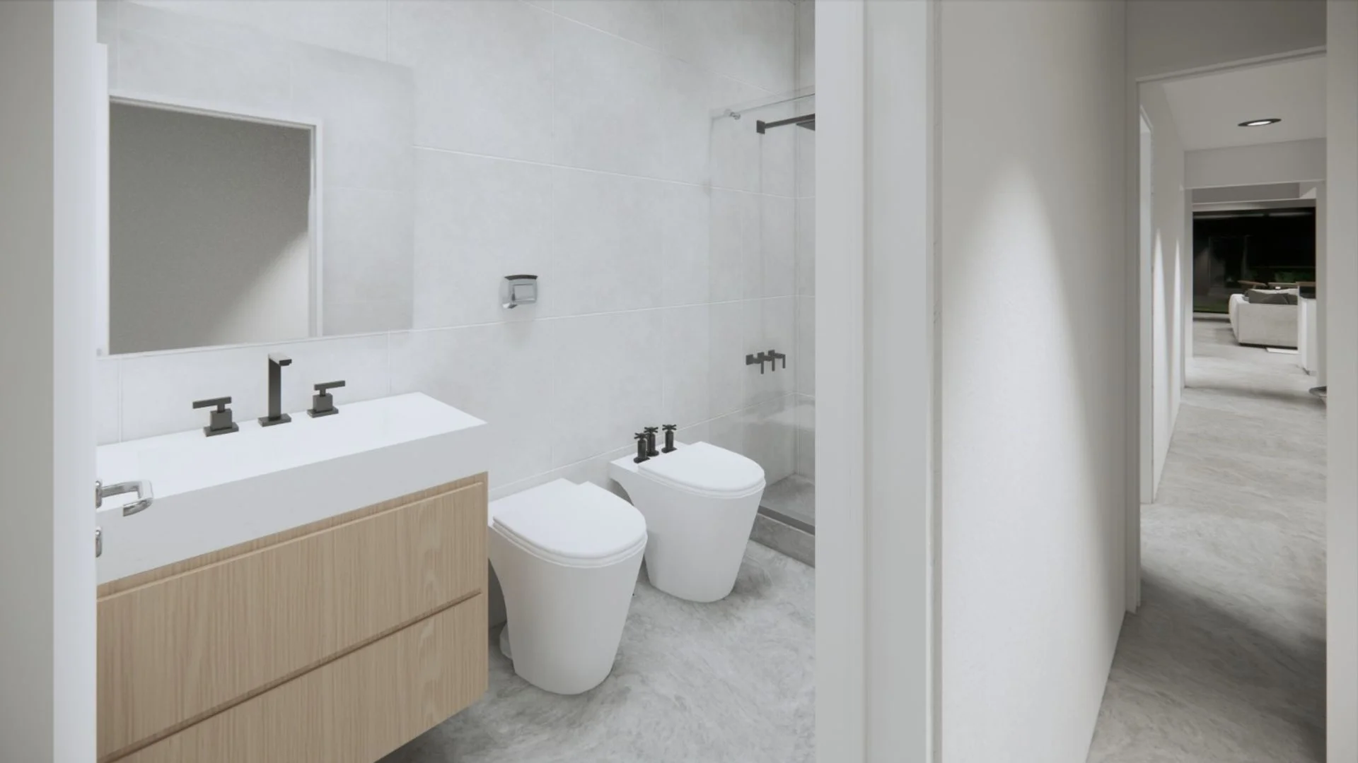 - Pisos y paredes interiores con terminación de hormigón visto alisado y/o microcemento